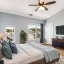 Bathed in natural daylight and featuring high ceilings throughout, the home feels bright and expansive. The gourmet kitchen is complete with granite countertops, a spacious island, a pantry, and an eat-in breakfast area. French doors lead you to a private deck, perfect for morning coffee or evening relaxation with a book and a favorite drink. With three spacious bedrooms, each offering its own en-suite bathroom, comfort and privacy are never in short supply. The primary suite includes vaulted ceilings, a walk-in closet, a double vanity, and a luxurious soaking tub and shower combination, perfect for unwinding after a long day. Upstairs, the secondary bedroom impresses with double closets, while the downstairs bedroom offers flexibility for a home office, guest suite, gym, or media room. The back area of the home provides a peaceful retreat, great for quiet reflection or casual outdoor time. The HOA maintains all exterior upkeep, allowing you to focus solely on enjoying your living space. Visitors will appreciate the ample guest parking, and pet lovers will enjoy the community dog park, a popular gathering spot among neighbors. With 24-hour gate security, a sparkling swimming pool, and a strong sense of community, this neighborhood offers comfort and peace of mind.