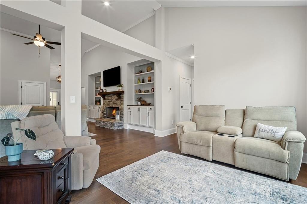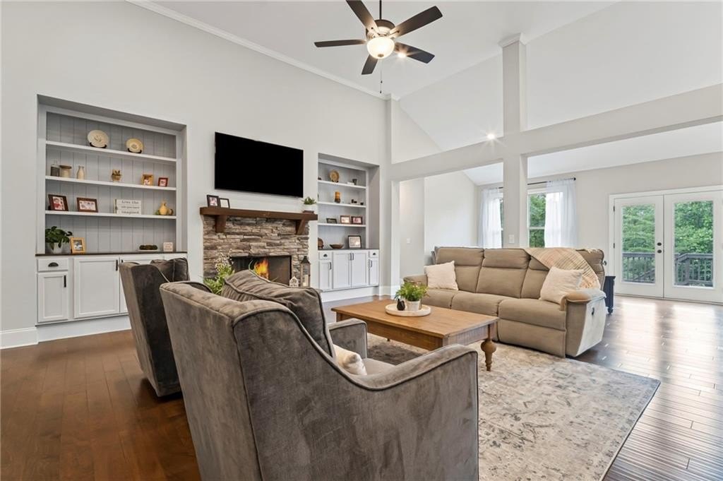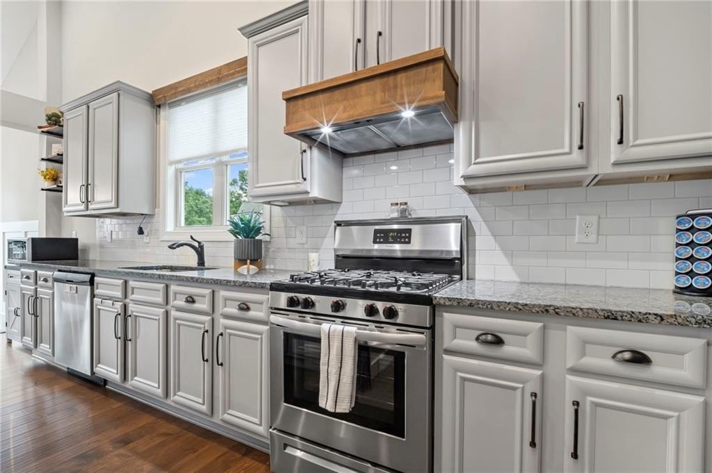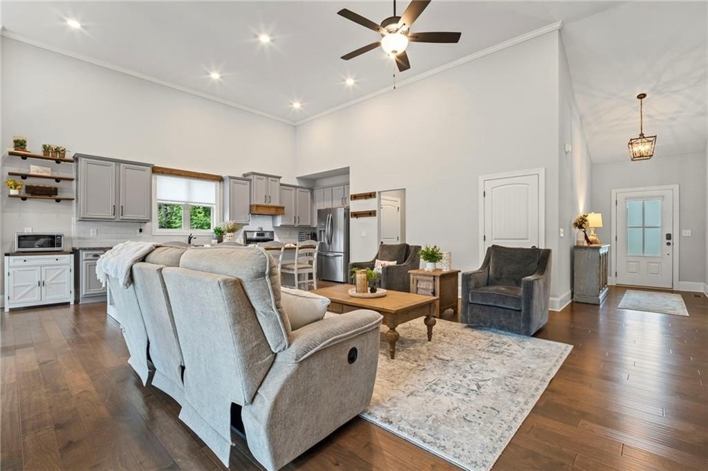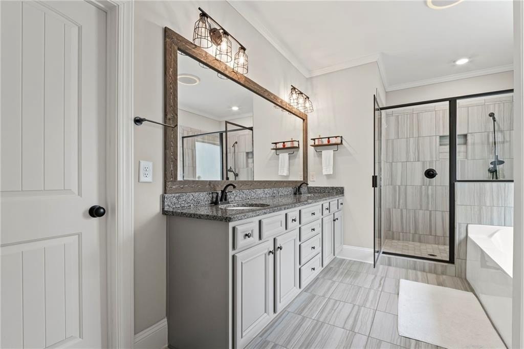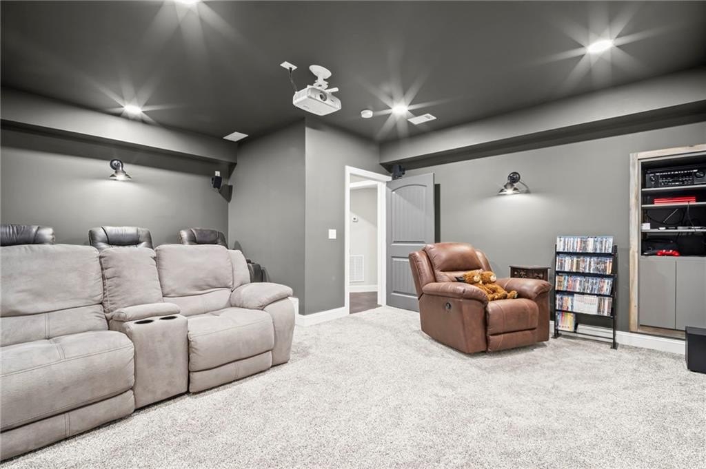 Farmhouse living at its finest! Only four years old and better than new! Large open concept ranch on a full, finished basement. This home is maxed out on upgrades. It will most definitely check off all the boxes! This stunning home is located in Little Bear Subdivision, a quiet, beautiful conservation neighborhood tucked away in Cherokee County and sits perfectly on a one acre lot with a gently sloping backyard which is private and fenced. Beautiful open concept boasts a large chef’s kitchen, bright, airy family room with separate dining area and lots of natural lighting. Stacked rock fireplace adorned with two custom built-in bookshelves. You will surely enjoy this true wood burning fireplace with the cool, crisp weather right around the corner. Be the envy of all your friends and family with this dream of a kitchen. Beautiful, custom shaker cabinetry and matching granite throughout. Just wait until you see the 10 foot kitchen island! Every cook’s dream with so much space to prepare home cooked meals or perfect for entertaining. At the end of a long, hard day, enjoy a bubble bath in the large soaking tub or relax with a hot shower in the separate, large tiled shower. The Master Bath with double vanity joins the large walk-in closet and the spacious Master Bedroom with an abundance of natural lighting. Two secondary bedrooms with walk-in closets share a Jack and Jill bath also on the main floor. Upstairs is another bedroom, full bath and loft area. Perfect for a teen suite or home office. Prepare to be amazed with this finished basement which includes something for everyone. A home gym, movie room, arcade, a second pantry, a office, and another bedroom and full bath as well as a second family area. Behind the bookshelves, you will find an unfinished storage area which houses the dehumidifier built into the HVAC system. Behind the second set of bookshelves, there is a secret safe room with reinforced stairs, motion censored lighting and is also heated and cooled. A great little nook for reading or waiting out the storms! Fall in love with the entry of Little Bear as it welcomes you home each day. Enjoy the 159 +/- acres with 84 craftsman style homes on one acre +/- lots. This is one of Cherokee County’s best kept secrets. A very quiet neighborhood that seems far away from all the traffic and congestion but conveniently located only 7 minutes away from Publix shopping center. Amenities include a large swimming pool, playground, clubhouse and pavilion. Located in the soon to be newly built Cherokee High school district. Easy access to shopping, dining and Hwy 575.