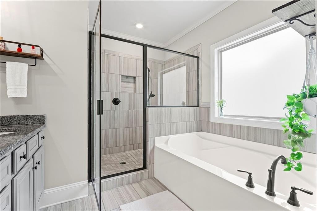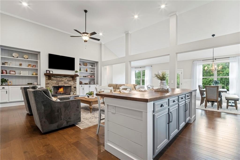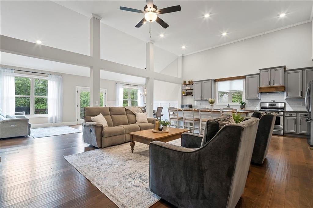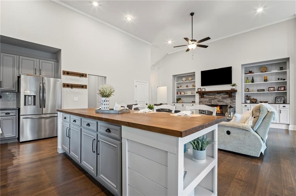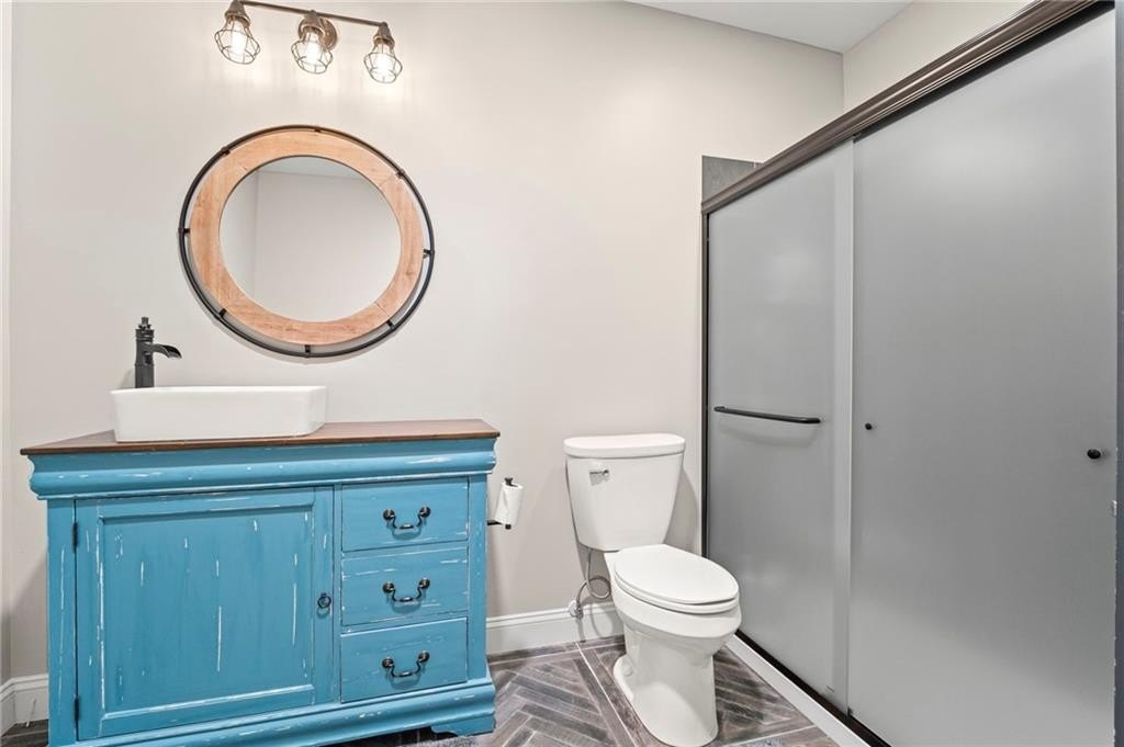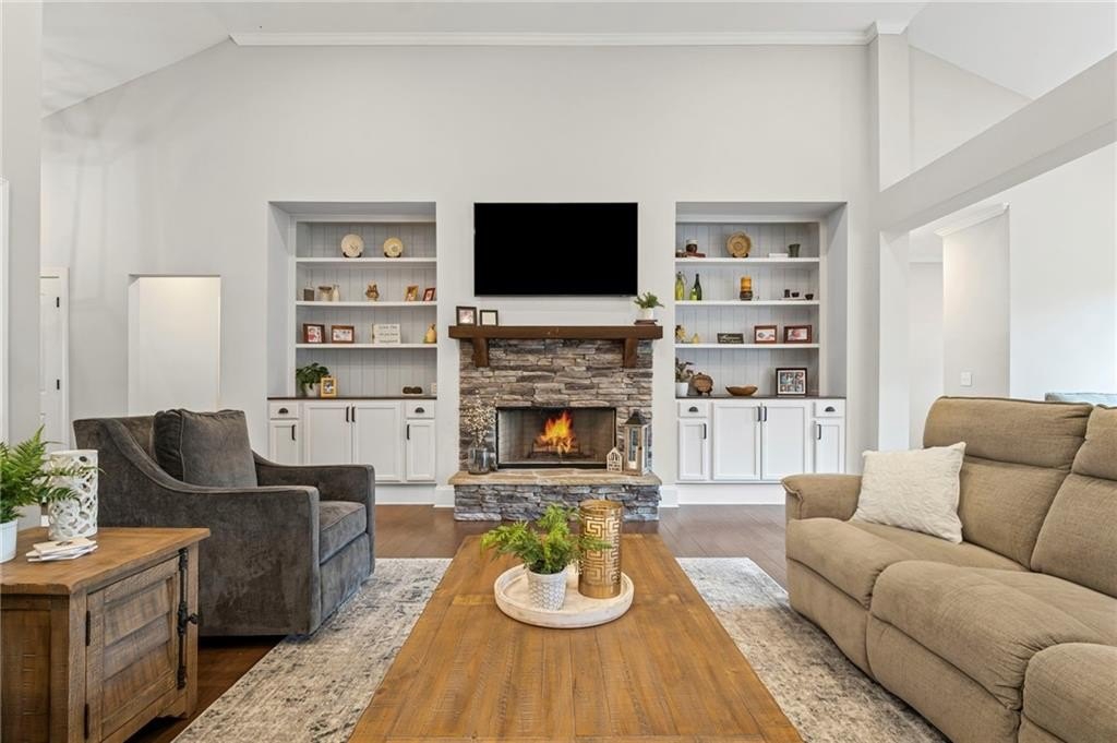 Farmhouse living at its finest! Only four years old and better than new! Large open concept ranch on a full, finished basement. This home is maxed out on upgrades. It will most definitely check off all the boxes! This stunning home is located in Little Bear Subdivision, a quiet, beautiful conservation neighborhood tucked away in Cherokee County and sits perfectly on a one acre lot with a gently sloping backyard which is private and fenced. Beautiful open concept boasts a large chef’s kitchen, bright, airy family room with separate dining area and lots of natural lighting. Stacked rock fireplace adorned with two custom built-in bookshelves. You will surely enjoy this true wood burning fireplace with the cool, crisp weather right around the corner. Be the envy of all your friends and family with this dream of a kitchen. Beautiful, custom shaker cabinetry and matching granite throughout. Just wait until you see the 10 foot kitchen island! Every cook’s dream with so much space to prepare home cooked meals or perfect for entertaining. At the end of a long, hard day, enjoy a bubble bath in the large soaking tub or relax with a hot shower in the separate, large tiled shower. The Master Bath with double vanity joins the large walk-in closet and the spacious Master Bedroom with an abundance of natural lighting. Two secondary bedrooms with walk-in closets share a Jack and Jill bath also on the main floor. Upstairs is another bedroom, full bath and loft area. Perfect for a teen suite or home office. Prepare to be amazed with this finished basement which includes something for everyone. A home gym, movie room, arcade, a second pantry, a office, and another bedroom and full bath as well as a second family area. Behind the bookshelves, you will find an unfinished storage area which houses the dehumidifier built into the HVAC system. Behind the second set of bookshelves, there is a secret safe room with reinforced stairs, motion censored lighting and is also heated and cooled. A great little nook for reading or waiting out the storms! Fall in love with the entry of Little Bear as it welcomes you home each day. Enjoy the 159 +/- acres with 84 craftsman style homes on one acre +/- lots. This is one of Cherokee County’s best kept secrets. A very quiet neighborhood that seems far away from all the traffic and congestion but conveniently located only 7 minutes away from Publix shopping center. Amenities include a large swimming pool, playground, clubhouse and pavilion. Located in the soon to be newly built Cherokee High school district. Easy access to shopping, dining and Hwy 575.
