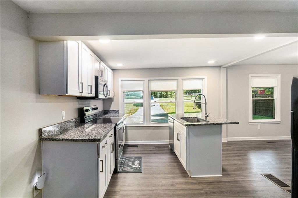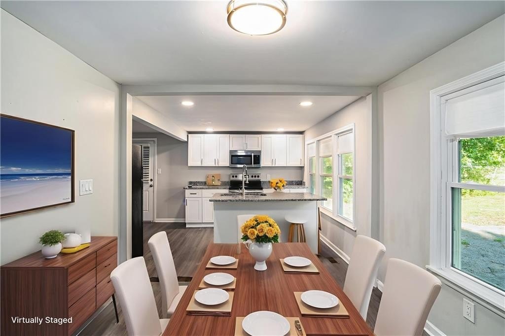 This beautifully updated 3-bedroom, 2-bathroom ranch offers the perfect blend of comfort, space, and convenience. Nestled on a spacious, nearly half-acre lot in a peaceful setting, this move-in-ready home was thoughtfully remodeled just three years ago. Step inside to an inviting open-concept layout featuring a cozy family room, dining area, and a well-appointed kitchen with all appliances included. The owner's suite offers a relaxing retreat with an ensuite bathroom, dual vanities, and a tiled walk-in shower. Two additional bedrooms share a full hall bath, and a separate laundry room adds everyday convenience. Enjoy morning coffee on the front porch or host gatherings in your private backyard, ideal for entertaining family and friends. With NO HOA and easy access to schools, shopping, great dining options, and major highways, this home is a rare find. Don't miss your chance to make it yours! Schedule your viewing appointment today!
