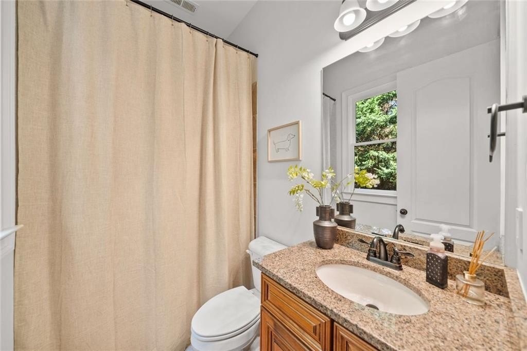 Welcome to 4550 Wigley Estates Road - a stylish executive home in East Cobb! This beautifully updated 3-sided brick residence offers the perfect blend of luxury, functionality, and location. Nestled on a private, flat, fully fenced lot with mature trees, this home features a 3-car garage and a spacious, thoughtfully designed floorplan ideal for modern living. Step inside to discover new LVP flooring throughout the main level, fresh neutral paint, and striking updated lighting fixtures. The home exudes contemporary elegance, with soaring ceilings and stylish finishes throughout. The powder bath has been fully remodeled and features a dramatic black Calacatta Monaco waterfall sink that makes a bold statement. The main level includes a dedicated office and a versatile guest suite with an ensuite bath - currently used as a home gym. Entertain effortlessly with a formal dining room, a spacious family room with an updated fireplace, an additional cozy sitting room, and a second updated fireplace for added charm. Culinary enthusiasts will appreciate the well-appointed kitchen, complete with stainless steel appliances, and ample cabinetry. Upstairs, retreat to the expansive primary suite with a serene sitting area, luxurious bathroom with his-and-hers vanities, a soaking tub, separate shower, and an impressively large walk-in closet. Two secondary bedrooms share a convenient Jack-and-Jill bath, while a third bedroom enjoys its own ensuite. A large bonus room completes the upper level - ideal as a media room or home theater. Located approximately a mile off Sandy Plains Road, this home is minutes from shopping, dining, and entertainment in both Downtown Woodstock and Downtown Roswell. Zoned for top-rated East Cobb schools, this property offers exceptional value and lifestyle in one the area's most sought-after communities. Stylish, spacious, and move-in ready, this one checks all the boxes. Come see it for yourself!