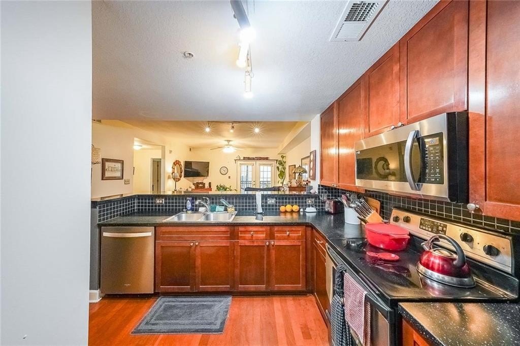 Are you looking for an easily accessible home? This condo, nestled in the heart of Decatur in a tranquil corner of the highly sought-after Decatur Renaissance building, offers just that - it was desiged with a larger entrance into the kitchen then the "true" one bedroom units in this building, a bathroom spaced out for easy wheel chair use, and accessible doors into the bedroom and closet. This beautifully designed 1.5-bedroom, 1-bathroom condo offers the perfect blend of convenience and comfort. Wondering about the "half bedroom"? It's a versatile, flexible space that can be tailored to your needs-currently used as a cozy spare bedroom, it's also been an elegant dining room, a home office, or even a workout space. The possibilities are endless and you only pay the HOA of a one bedroom unit, not a two bedroom unit! The open-concept layout is bright, airy, and move-in ready, allowing you to settle in without a hitch. Step outside to your private patio, where you can unwind and take in stunning views of the lush grounds, quenching pool, and Midtown skyline-views you'll also enjoy from the spacious primary bedroom. Speaking of the primary bedroom, it's a true retreat, offering the largest walk-in closet in the building, providing you with all the storage space you could need. The generously sized bathroom adds even more functionality, with plenty of storage and a sense of spaciousness that complements the home's inviting, cozy vibe. The chef-inspired kitchen, with its large peninsula, is an entertainer's dream. Imagine preparing delicious meals while friends and family gather around, creating memories in a space designed for socializing and connection. Living at Decatur Renaissance means more than just owning a condo-it's about embracing a lifestyle. The building offers top-tier amenities, including a fully-equipped fitness center, a yoga studio, conference and media rooms, and a community space with a kitchen for gatherings. Outside, enjoy the beautifully landscaped grounds, take a dip in the pool, or fire up the BBQ for a perfect evening with neighbors and friends. With an on-site manager ensuring everything is well-maintained, you can rest easy knowing every detail is taken care of. Plus, with MARTA just steps away, along with coffee shops, boutiques, and some of the best award-winning restaurants (including the highly anticipated Trader Joe's just one block away), everything you need is right at your doorstep-no car necessary! Don't miss out on this rare floor plan, incredible amenities, and unbeatable location. It's the perfect place to call home in one of Decatur's most vibrant and desirable neighborhoods!