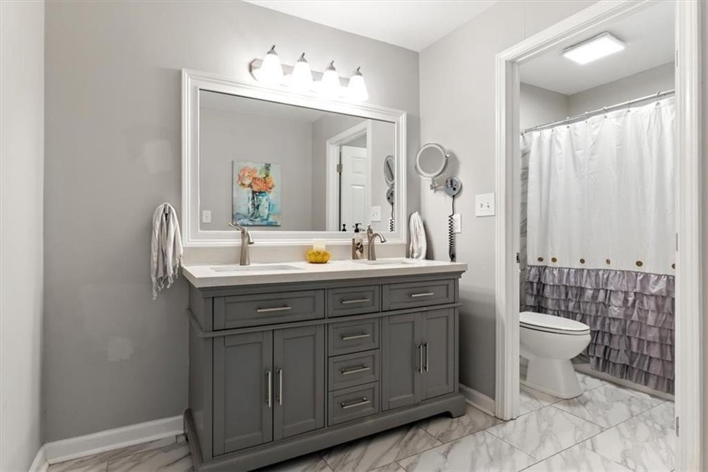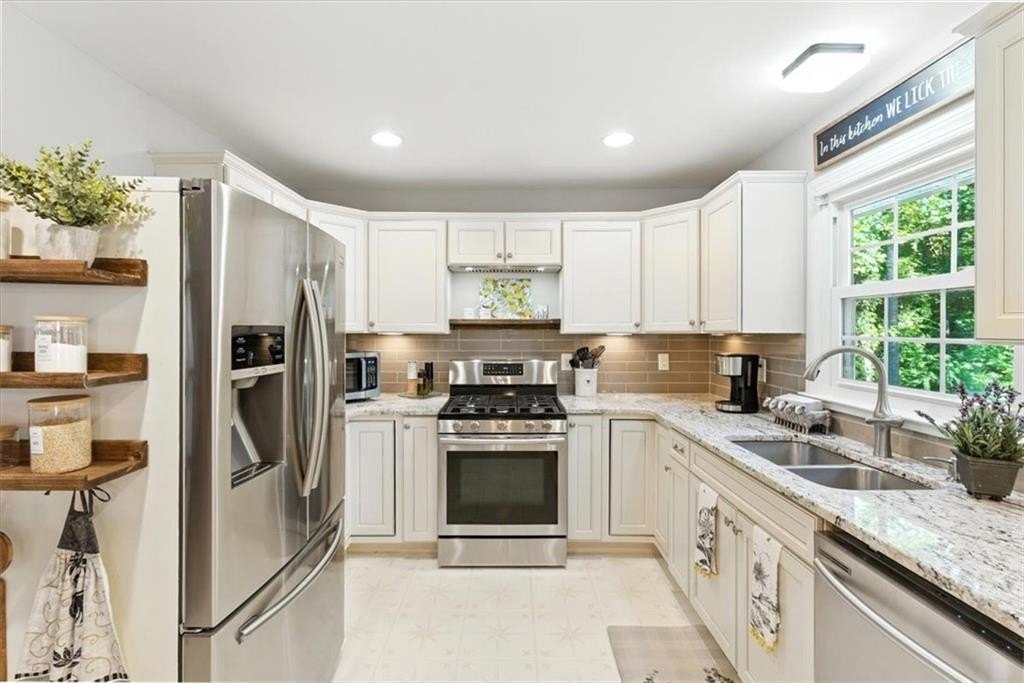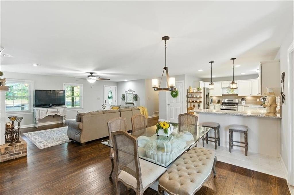 Back on the market after the previous buyers' home didn't sell-now's your chance to make this spacious ranch on .95 acres yours! Enjoy charming, reimagined spaces thoughtfully crafted by the owner. A large family room will accommodate your big comfy furnishings and decor with a view from the kitchen with gorgeous cabinetry, granite countertops, a breakfast bar, and a breakfast area. Distinctive hand-painted and stenciled floors add character to the kitchen, laundry room, and hall bath. The owner's bedroom and an additional bedroom are located down the hallway, while a room near the kitchen, currently used as an office, could easily be converted into a private bedroom. Off the garage an adorable pet grooming room (great for you or the kids too coming in from the yard) was added. It's both functional and fun with plumbing and can easily be converted to a bathroom if desired. The renovated terrace level adds extra living space, complete with a kitchenette, two spacious bedrooms, a full bathroom, a cozy living area, and a private entrance-ideal for an in-law suite, a teenager, or even rental income potential. Outside, the terrace-level yard features its own fenced section, separate from the main backyard. The owner had a certificate of occupancy valid through December 2025 and had successfully rented out the terrace level as an Airbnb for traveling ball families. It's ideal for short-term stays, traveling nurses, or anyone in need of housing. The opportunities are endless. A new traffic light is going in, making commuting a breeze! Just minutes from Lake Allatoona for boating and recreation, as well as nearby shopping, dining, and the interstate. Closing attorney Campbell and Brannon Dallas Hwy as they already have title work completed!