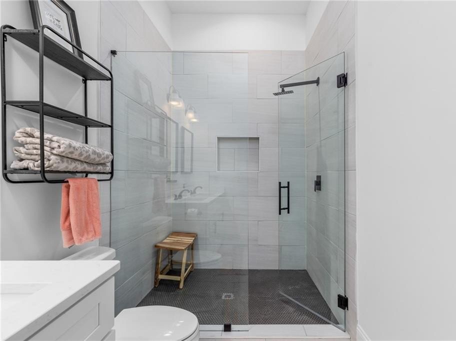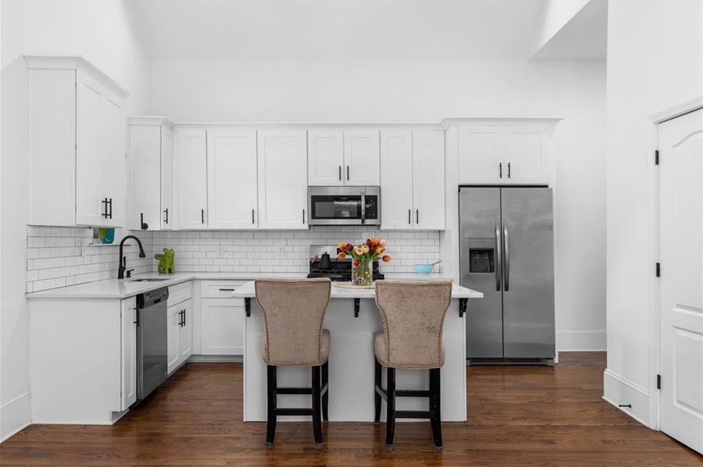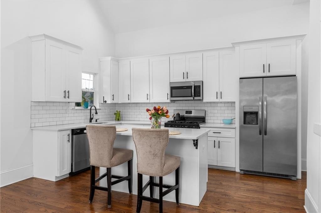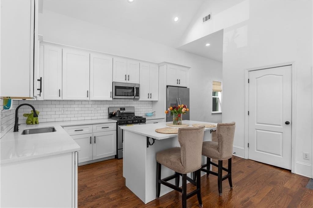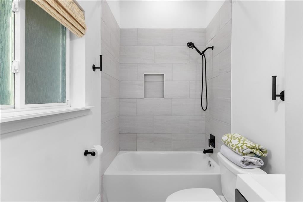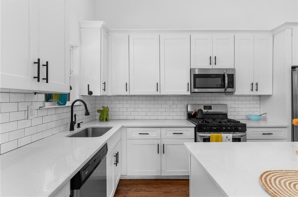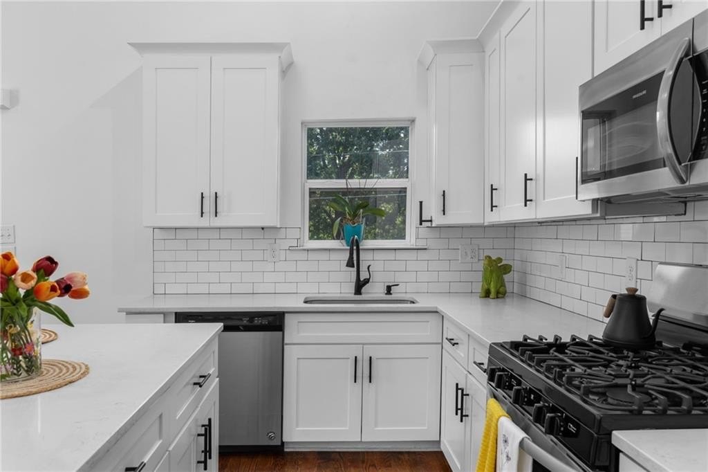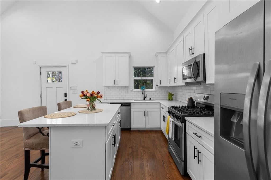 Welcome to this charming vintage bungalow in the SW community of Pittsburgh. Recently renovated within the last three years, this adorable home combines a clean modern look while maintaining some of the historic details. From the rocking chair front porch, enter in to an open concept kitchen and living area with the original, decorative fireplace and vaulted ceilings. The bright kitchen features stainless steel appliances, quartz countertops, modern white cabinetry, and an island with storage--perfect for entertaining! The primary suite showcases a sleek double vanity and frameless glass shower. The wide hallway with sparkling chandelier serves as the ideal nook for a rectangular dining table to enjoy meals with family and friends. Beautiful site finished hardwood floors, LED lighting, and 11-foot ceilings throughout. Insulated windows, SMART thermostat and tankless water heater providing maximum energy efficiency. The backyard oasis begins with a large deck that overlooks the private fenced backyard is beautifully landscaped and turfed, just perfect for your pet as well as low maintenance care. This home truly is a peaceful, cozy sanctuary conveniently located just minutes from the airport, Downtown, Pittsburgh Yards, the Atlanta Beltline South Trail, Grant Park, Summerhill, and the Lee & White development and food hall in West End. Easy access to I-75 and I-20.