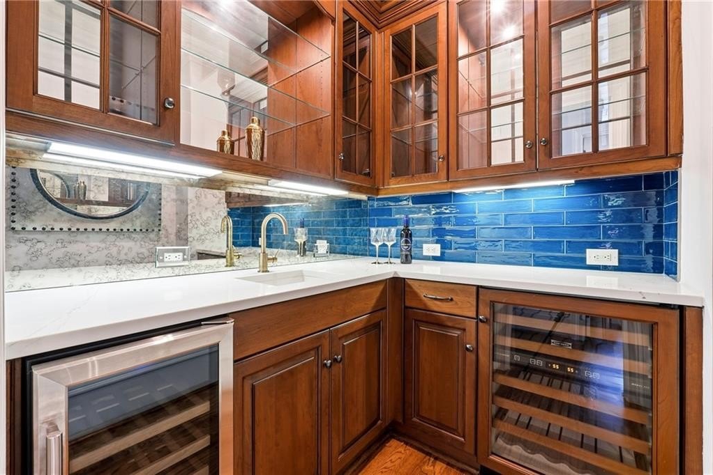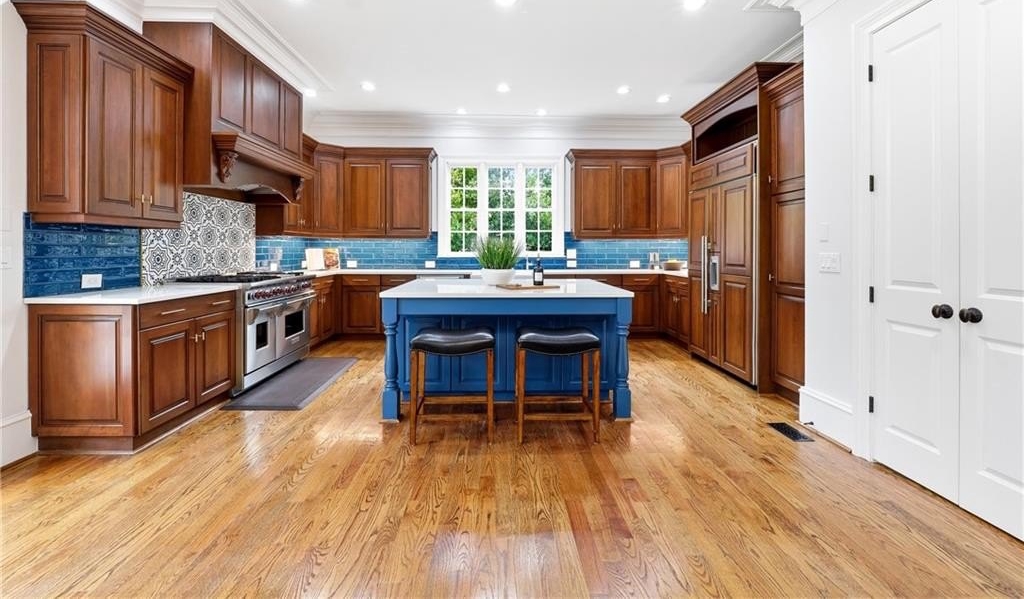 Tucked away on a serene cul-de-sac in one of Kennesaw's most desirable communities, this extraordinary Martha's Vineyard inspired estate blends timeless coastal elegance with modern luxury. Thoughtfully designed and updated, this home offers a rare combination of architectural charm, refined finishes, and resort-style living. From the moment you arrive, the home's shake and stone exterior, welcoming front porch, and gated driveway set the tone for the exceptional experience that awaits inside. The main level features a luxurious primary suite with direct views and access to the stunning backyard oasis, offering tranquility and convenience with spa-inspired finishes and thoughtful details. The expansive chef's kitchen is an epicurean's dream, showcasing updated countertops, designer backsplash, high-end fixtures, including a Wolf Range, a Cove dishwasher, a Sub-Zero, instant hot water, warming drawer and generous prep and storage space including a huge walk-in pantry. Upstairs, four spacious ensuite bedrooms provide comfort and privacy for family and guests, along with an upstairs media room/loft perfect for the family den and an additional bonus room large enough for work and play. The home features 3 half baths, a large laundry room with a "friend's entrance," and multiple spaces designed for both daily living and exceptional entertaining. Finished basement features a multi-seat state-of-the-art home theater designed by Georgia Home Theater, fitness room/6th bedroom, Game room, Full bath, and additional unfinished space to create the ultimate kitchen and bar. Just off the kitchen and family room, you step into a breathtaking, fully fenced backyard oasis that feels like your own private resort. The custom-designed pool by Aqua Design is surrounded by lush landscaping, curated lighting, and ample entertaining space; all crafted to maximize privacy and relaxation. Whether hosting summer gatherings or unwinding after a long day, this stunning outdoor retreat is the heart of the home. The estate features a Gated driveway/property, 3-car garage, Neighbor-friendly front porch perfect for relaxing. Additional features include a Gerard Stone Coated Steel Roof, Professional landscaping & drainage, Whole-yard mosquito system, professional Landscape & exterior house lighting, Brand new TimberTech deck w/ Brazilian Cumaru privacy wall, Hard-wired 60-amp electric car charger, Whole-house Cat-5 network with Unify wireless. This property delivers exceptional value, craftsmanship, and lifestyle. Sophisticated Living at It's Best!!
