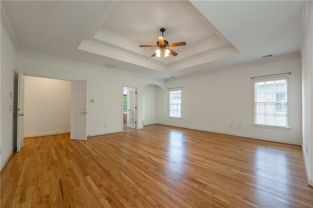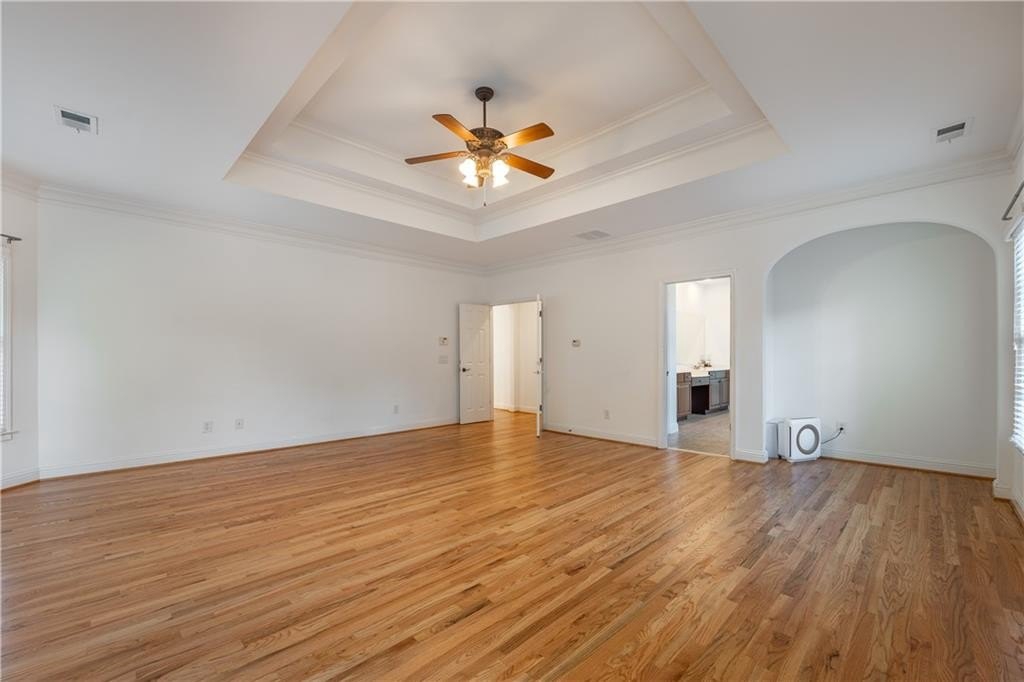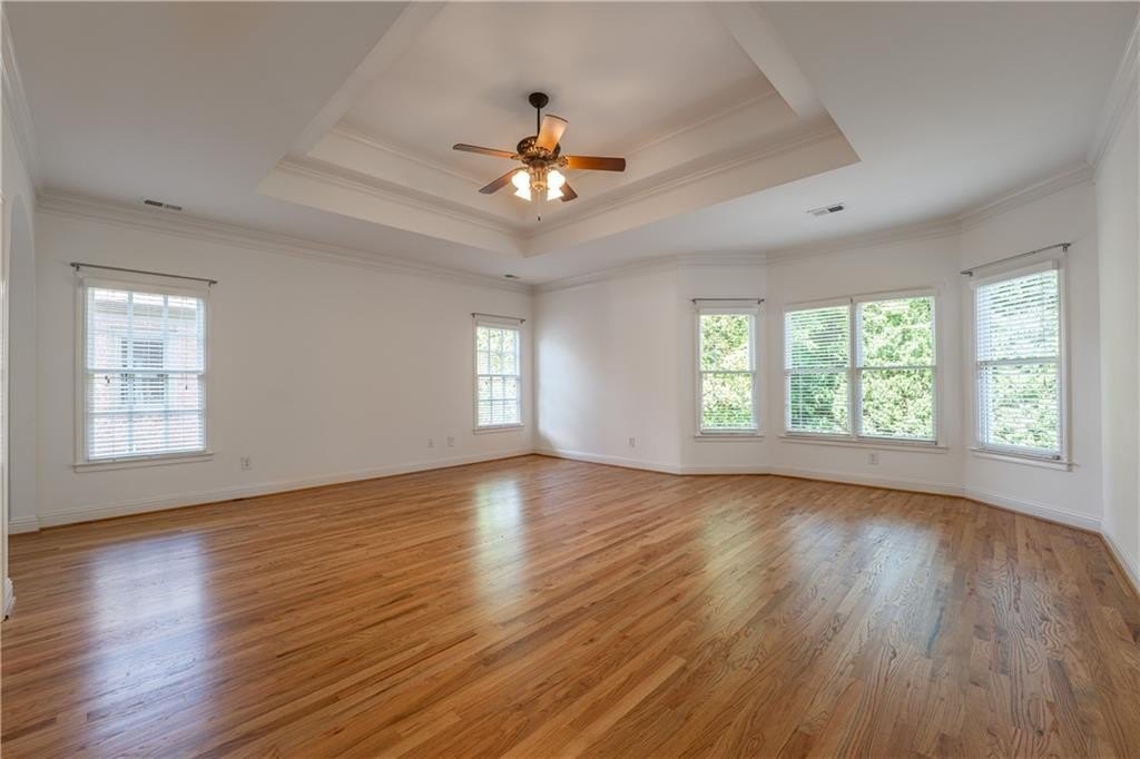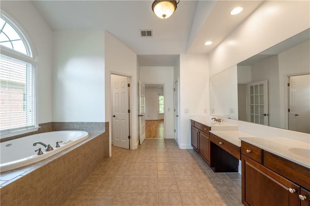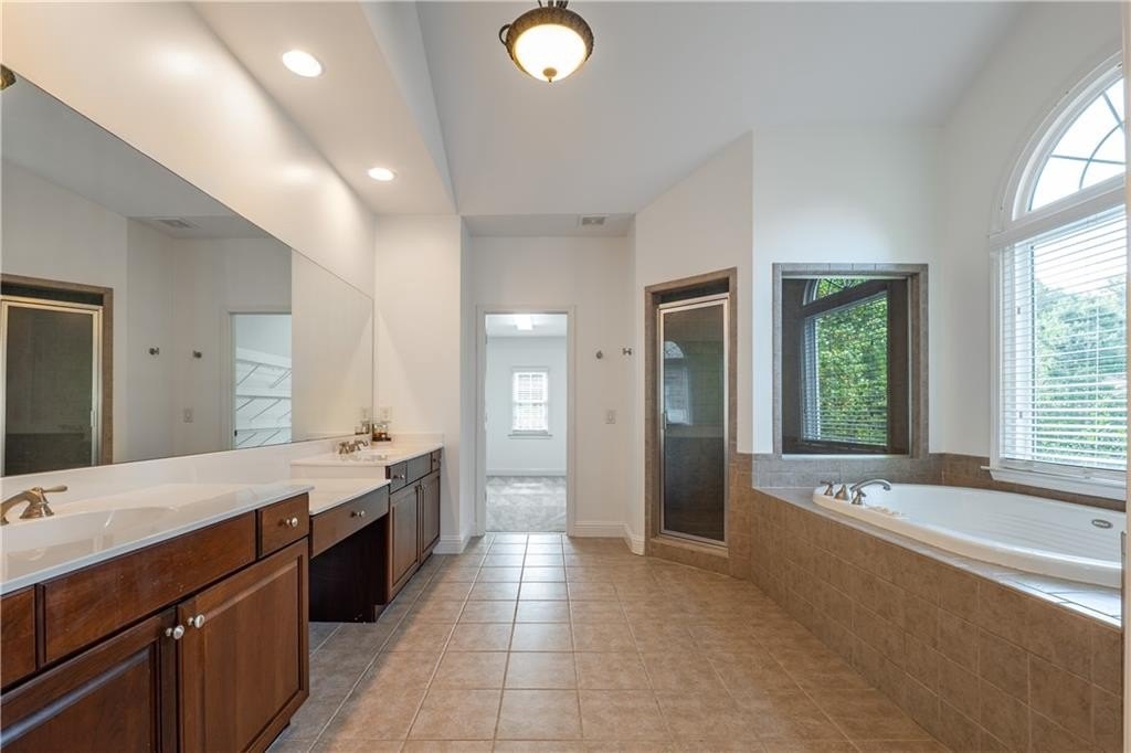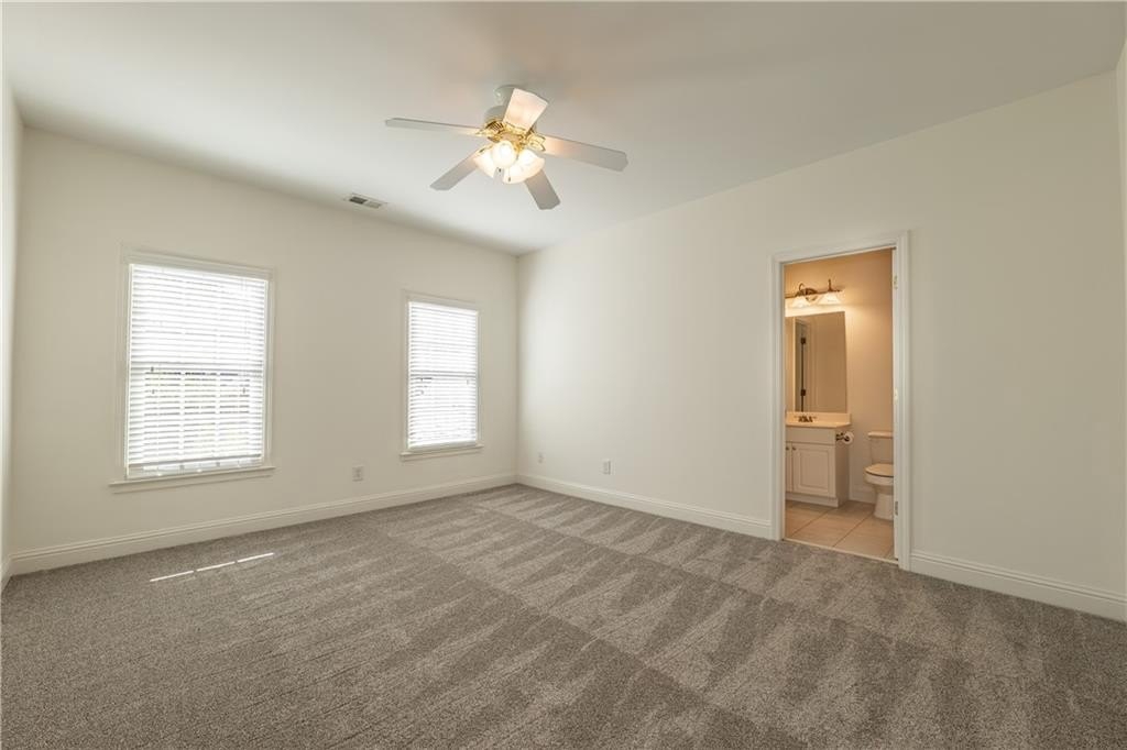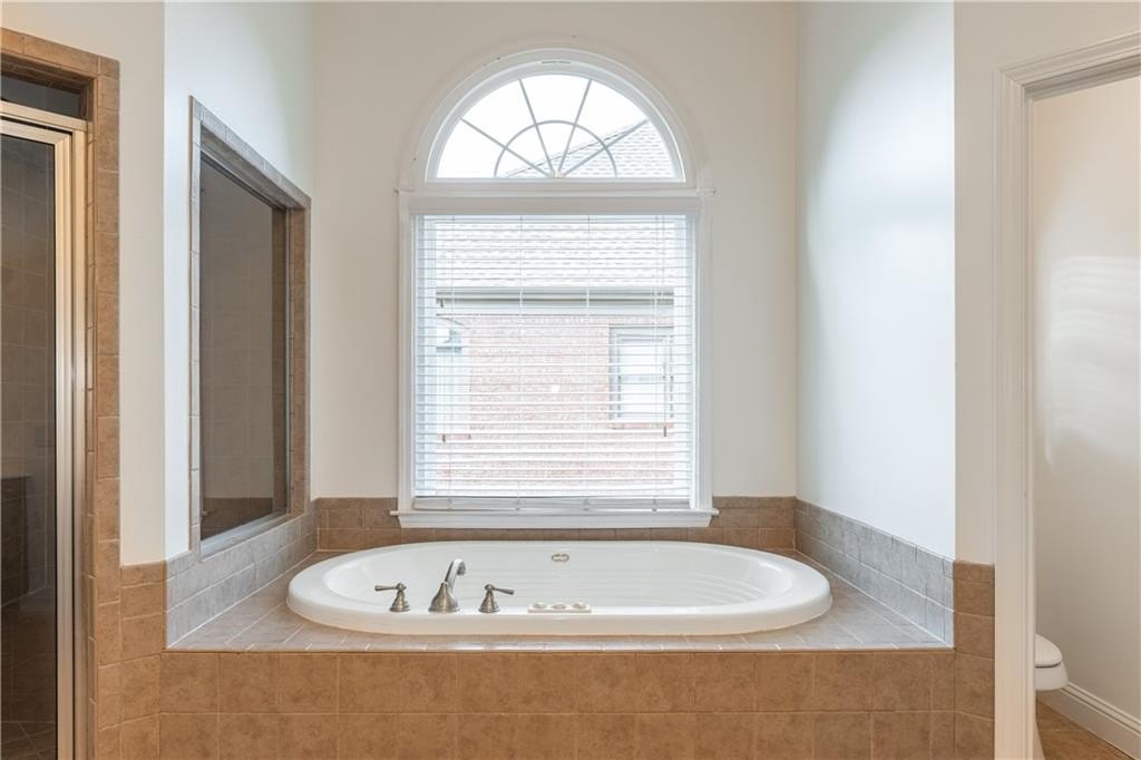 Ascend to the re-stained hardwood floors of the upper level, where the oversized primary suite awaits as a private retreat. Indulge in a spa-inspired bathroom with a large shower, jetted tub, double vanities, and a cavernous closet, all beaming with glorious natural light. Two additional bedrooms, each with ensuite bathrooms, offer privacy and comfort for family or guests.
