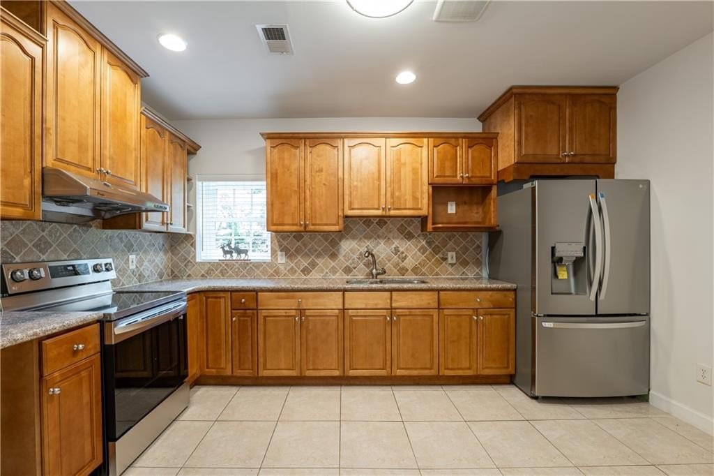 The fully finished basement, accessible via a private ground-floor entrance, is a world of its own. A full kitchen with new appliances and a dryer hookup anchors this space, complemented by a cozy den, a bedroom, a potential second bedroom, and a recreation room complete with a pool table—an ideal setting for entertaining or multigenerational living.