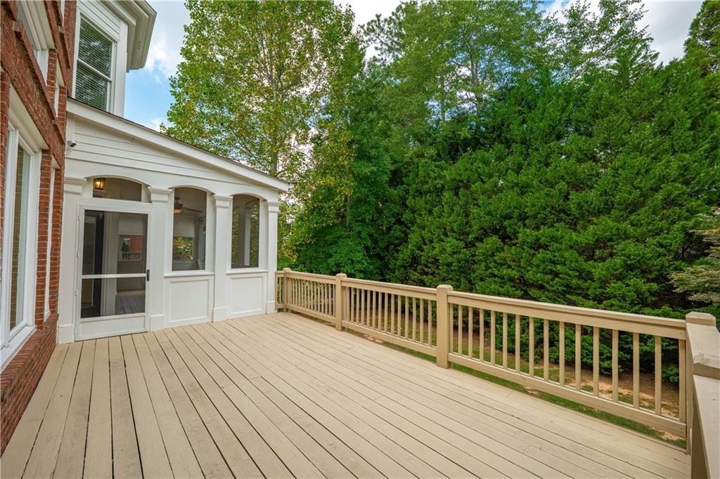 Outside, a screened-in patio flows effortlessly from the kitchen to a sprawling deck, with a shaded patio below, perfect for al fresco gatherings. The expansive, irrigated lot, framed by a serene tree-lined backyard, offers ample space for a pool or custom outdoor retreat, inviting endless possibilities.