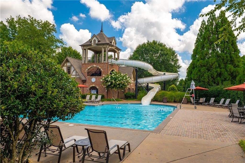 Residents enjoy access to an exclusive neighborhood clubhouse featuring a pool with a waterslide, tennis courts with a pavilion, a playground, and an 18-hole golf course. With trash pickup included, this vibrant community elevates convenience and leisure to new heights.