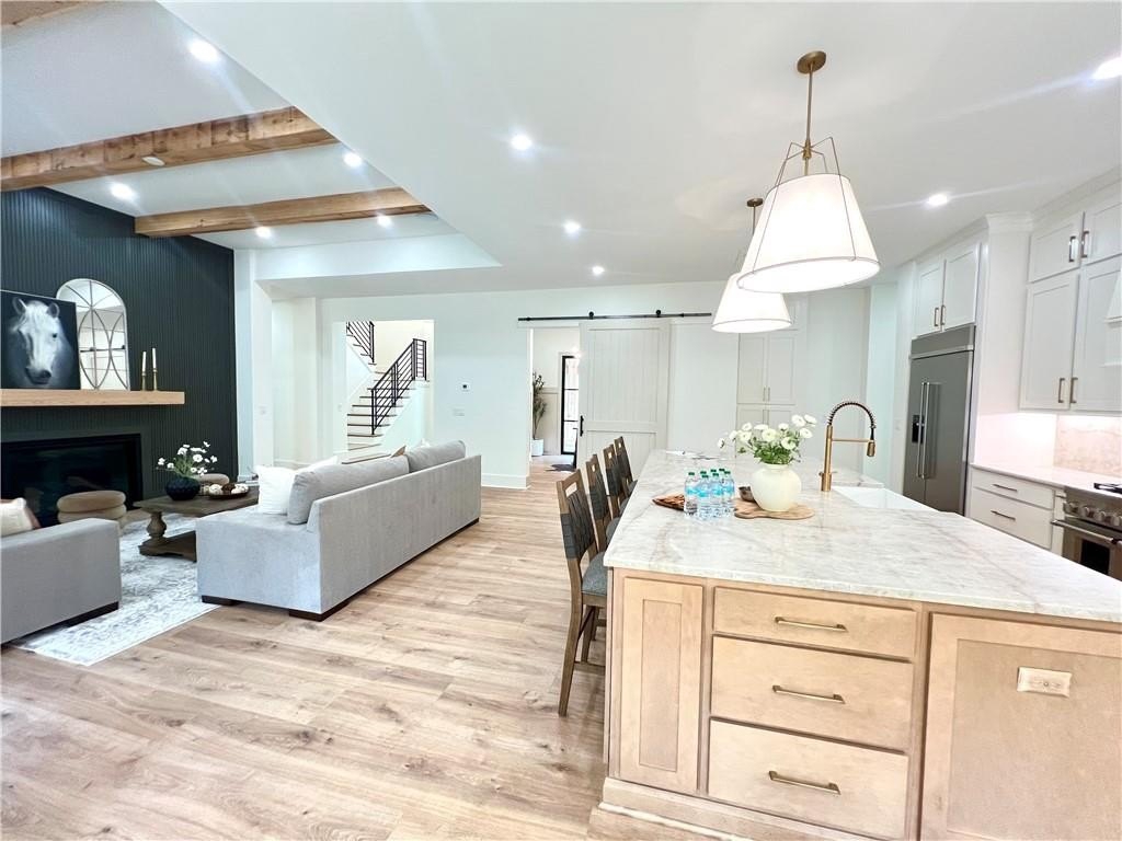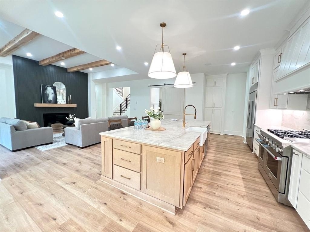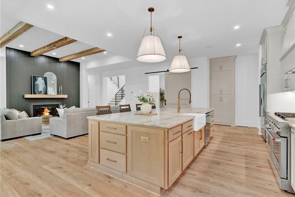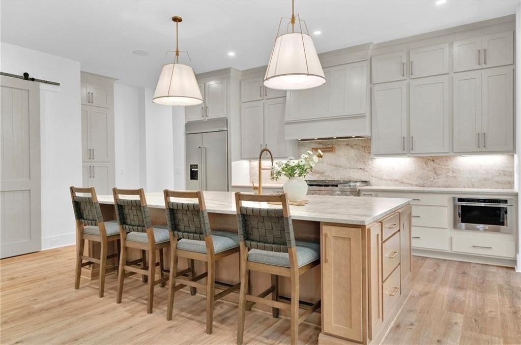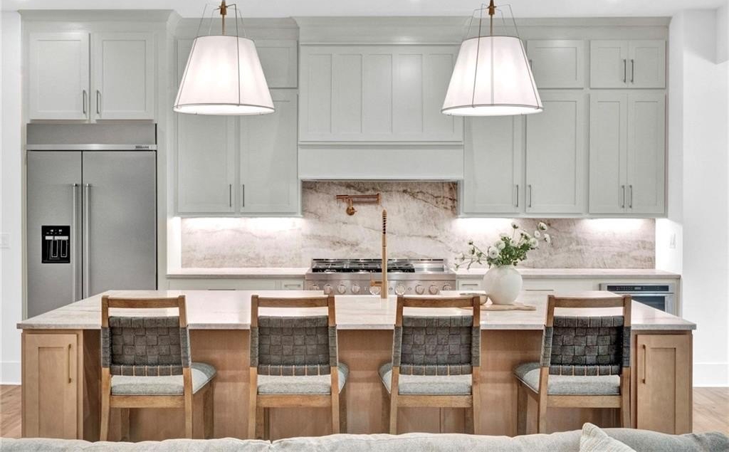 The heart of the home is an extraordinary kitchen designed to impress and inspire—boasting top-of-the-line appliances, an oversized island perfect for entertaining, a stylish pot filler above the cooktop, and a custom vent hood that adds a touch of sophistication. The massive walk-in pantry ensures everything has its place, keeping your counters beautifully uncluttered.