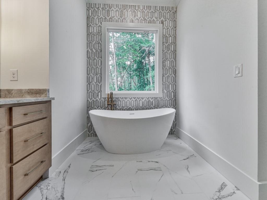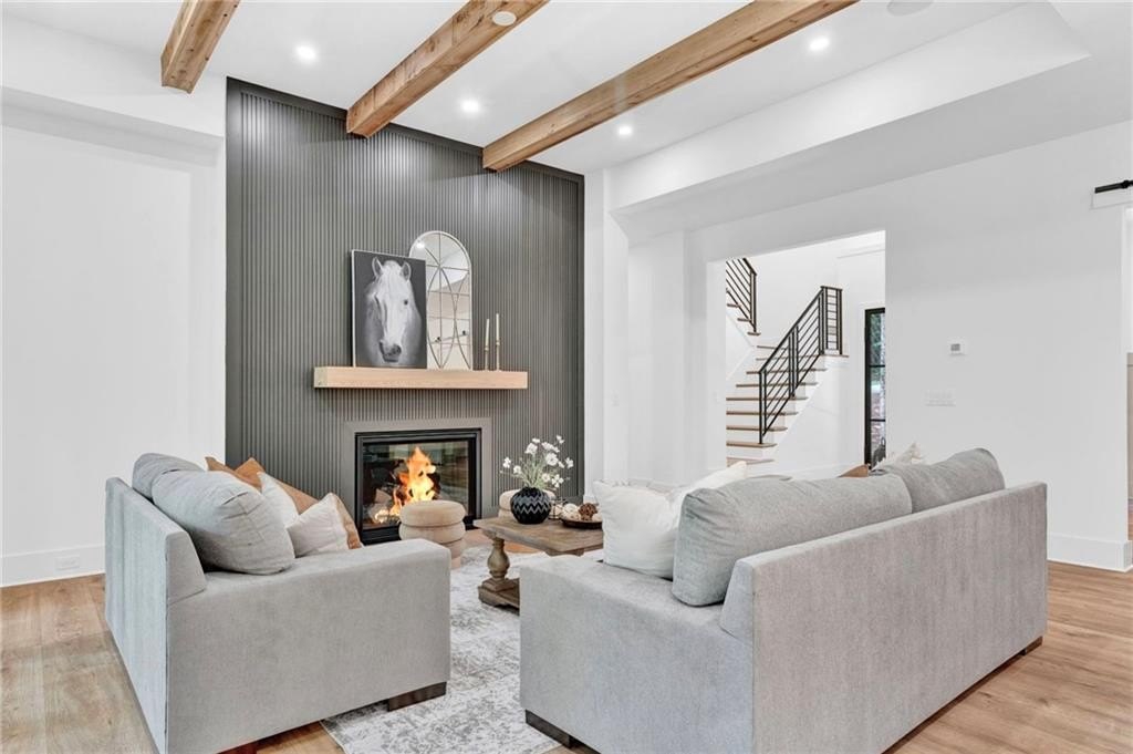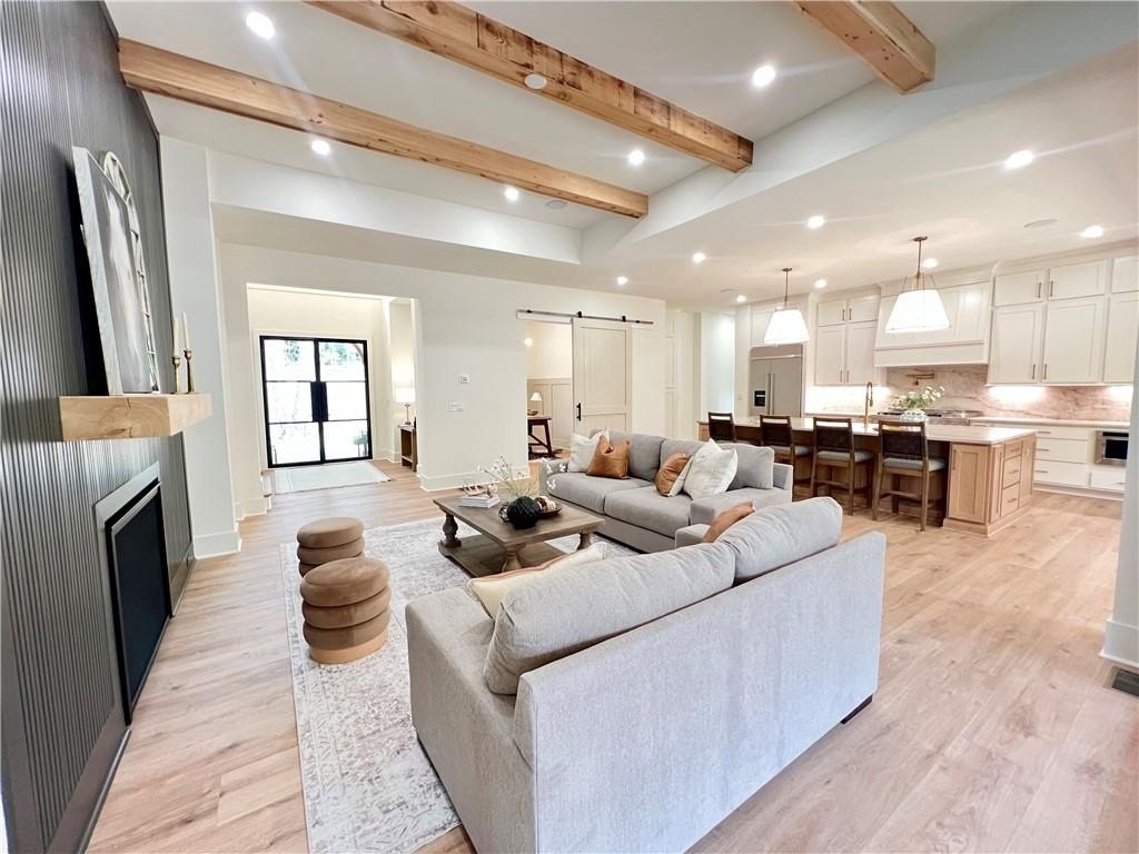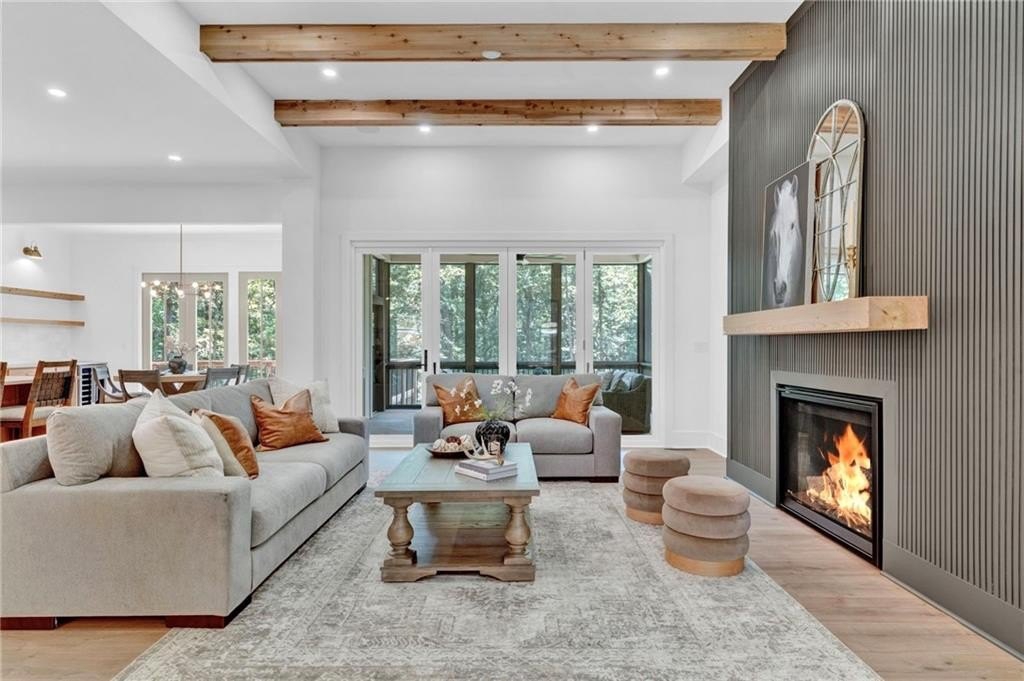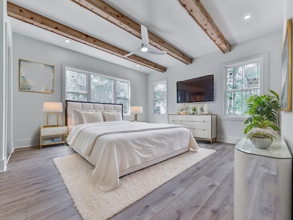 The main-level primary suite is a private sanctuary, featuring a beamed ceiling and a spa-like en-suite bathroom with a deep soaking tub, creating the ultimate escape after a long day. Upstairs, you’ll find four additional spacious bedrooms each with private en-suites, a versatile bonus room ideal for a home office, media room, or play space, and a fully equipped in-law suite complete with a kitchenette and full bath.