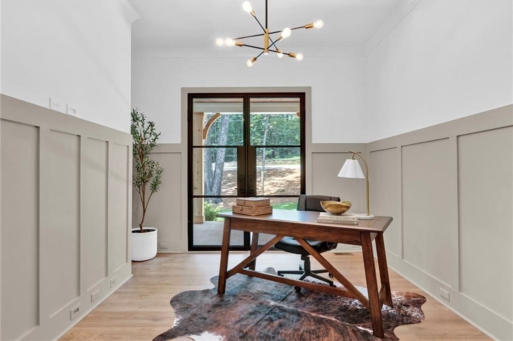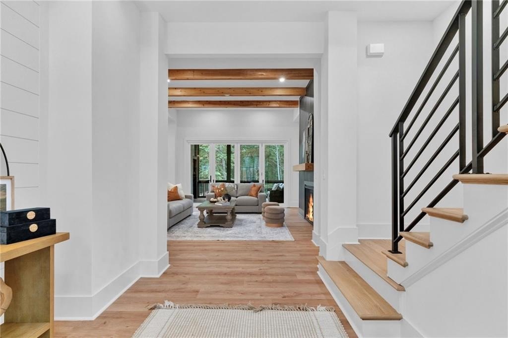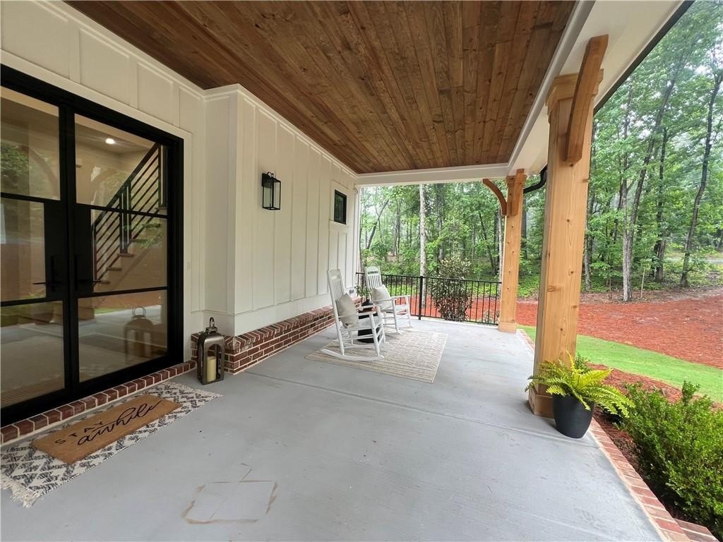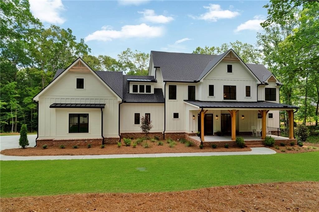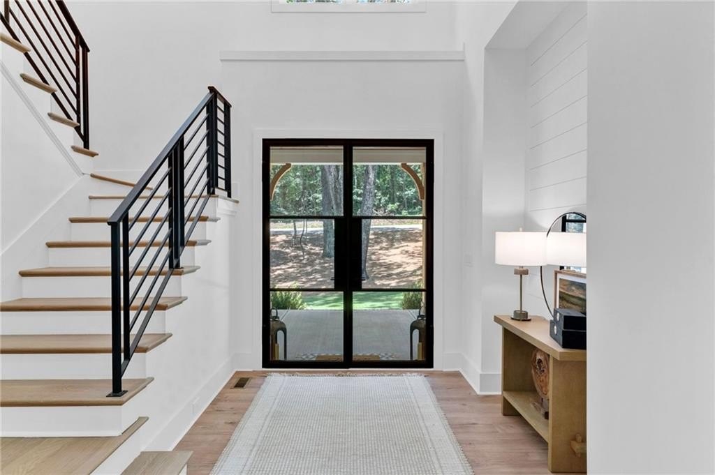 A large, covered front porch sets the tone, inviting you to relax and unwind before you even step inside. Behind the striking front door a soaring two-story foyer greets you with elegance, anchored by a custom wrought iron staircase that makes a statement without saying a word.