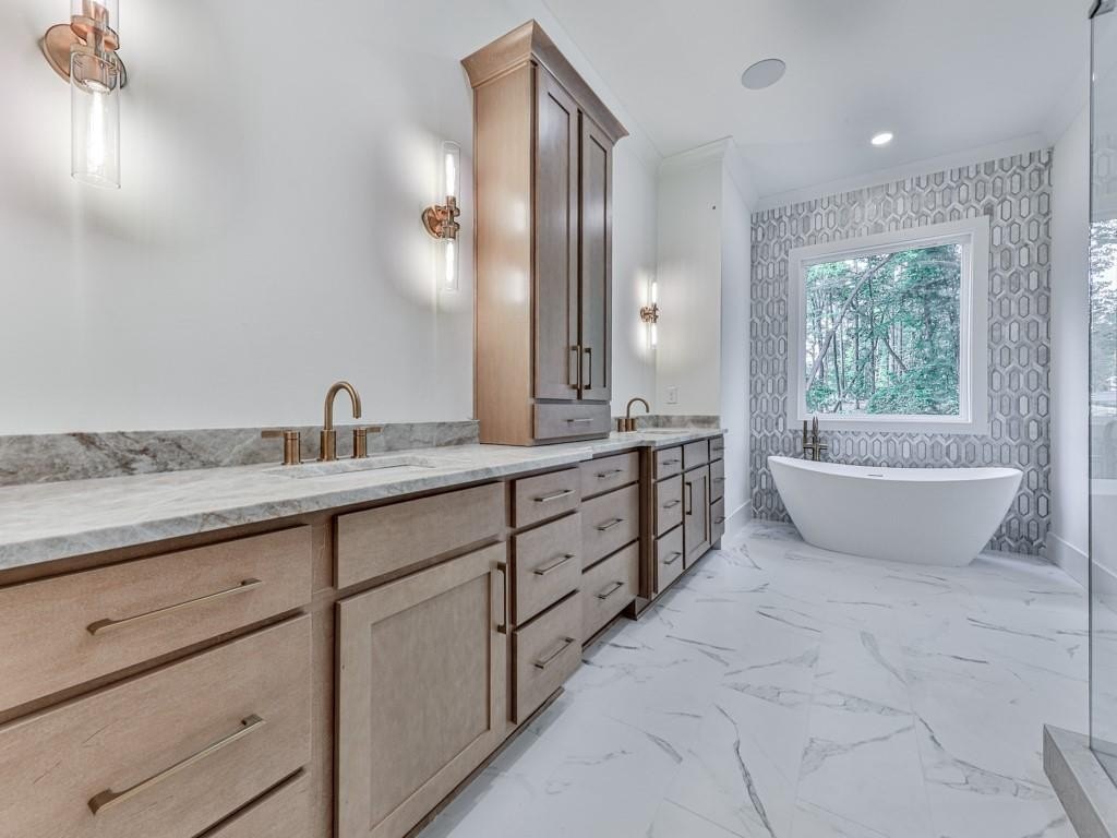 Additional luxuries include a whole-home speaker system on the main level, a thoughtfully designed laundry room with built-in cabinetry and sink, and a separate mudroom to keep everything neat and tidy.