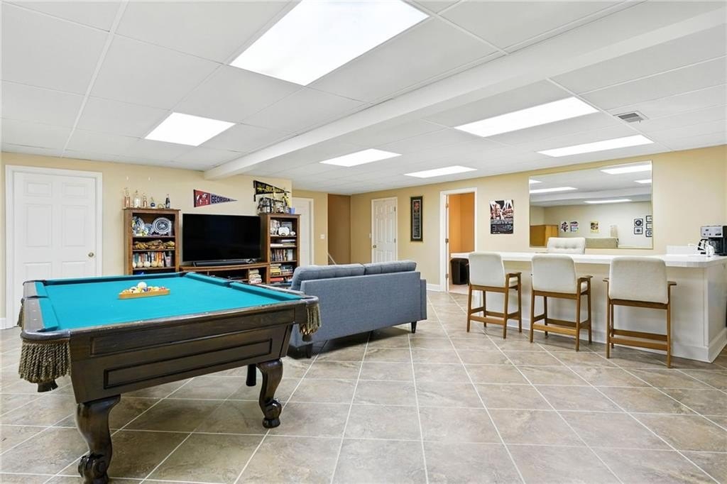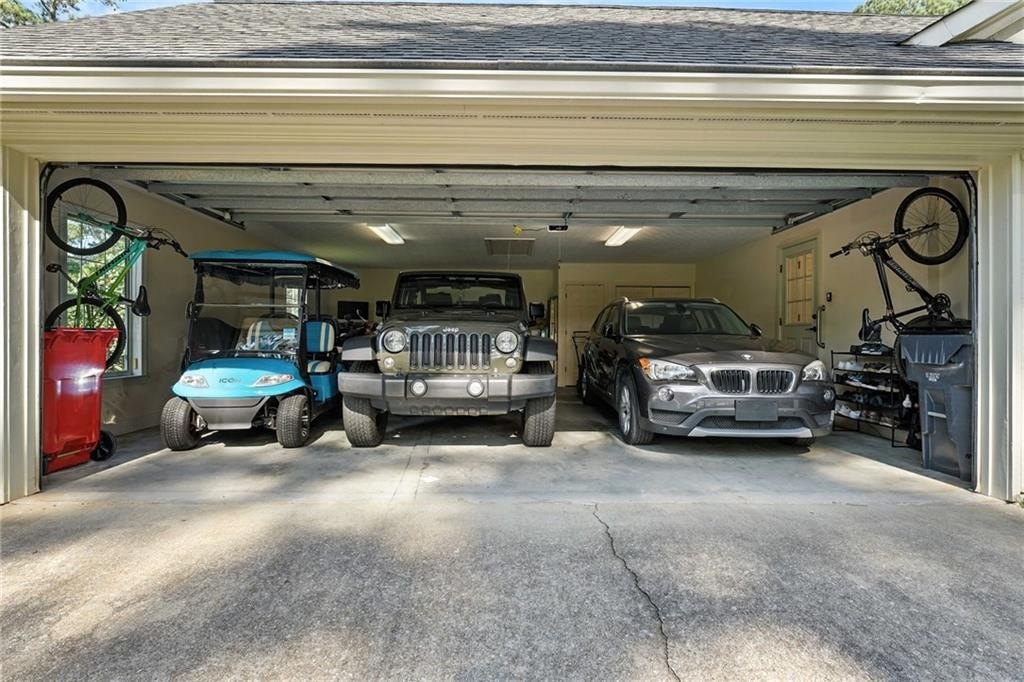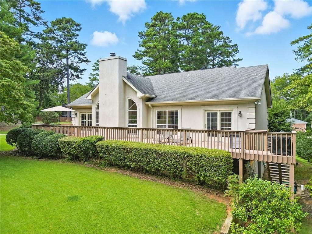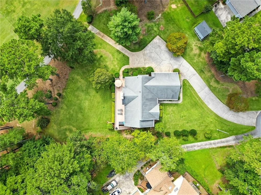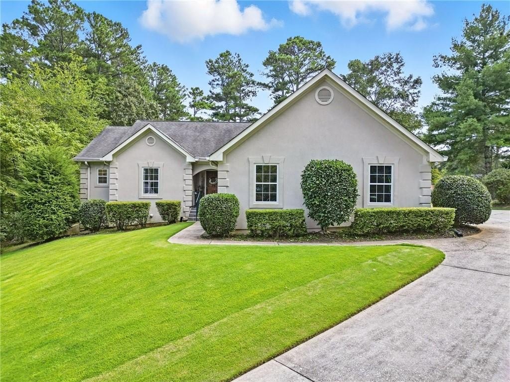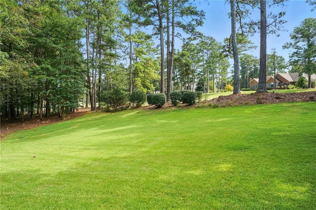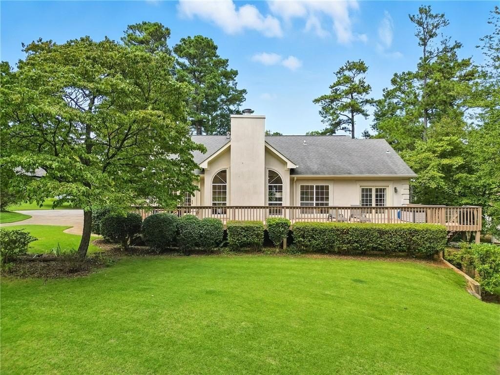Enjoy country club living in this beautifully updated 3-bedroom, 3.5-bath ranch on a half-acre cul-de-sac lot overlooking the 18th hole of Fairfield Plantation. Filled with natural light, this home features fresh interior paint throughout, vaulted ceilings in the great room with a large cozy fireplace, and an updated kitchen with new appliances, a breakfast nook, bar seating, and a separate formal dining room. Both the dining room and the master suite feature double French doors that open to a huge deck with views of the lush green backyard. The master also includes double vanities, a walk-in shower, and a jetted tub. The oversized garage provides space for cars, golf carts, motorcycles, tools, and even a workshop. The terrace level is designed for entertaining with French doors, windows, a wet bar, full bath, bridge table, regulation pool table with accessories, and an entertainment center perfect for movie nights or game days. A bonus unfinished area is divided into two sections that can easily be converted into additional bedrooms, a workshop, or studio space, plus plenty of storage. Outside, you’ll enjoy mature landscaping, flower beds, and room for outdoor living and expansion. This property is the only home in Fairfield Plantation with a private golf cart drive that provides direct access to the golf course and clubhouse area, which features a restaurant, pool, and tennis courts. Fairfield Plantation offers 24/7 gated security, a championship golf course, clubhouse and marina with restaurants and bar, tennis and pickleball courts, pools, two lakes with boating and fishing, and a full social calendar—all less than an hour from Atlanta and the airport.