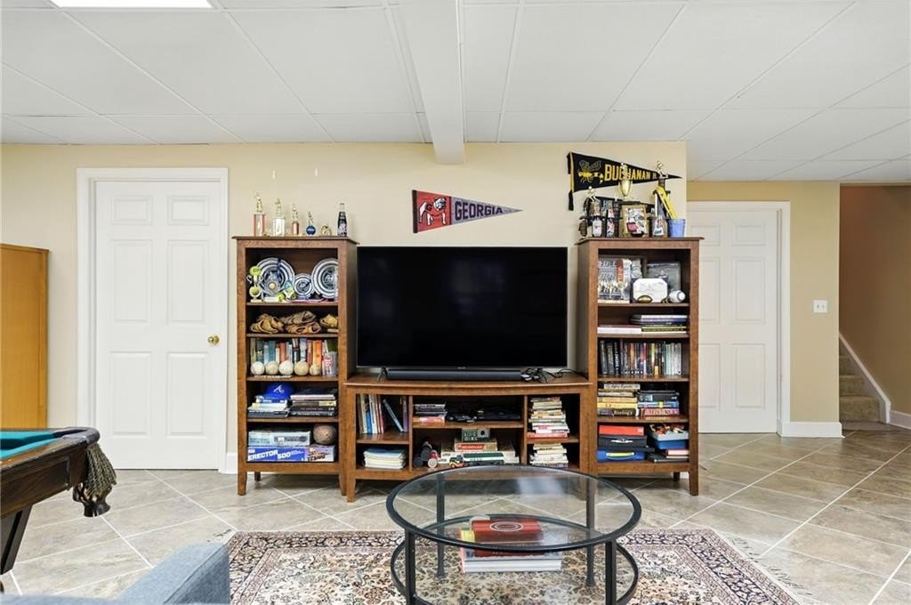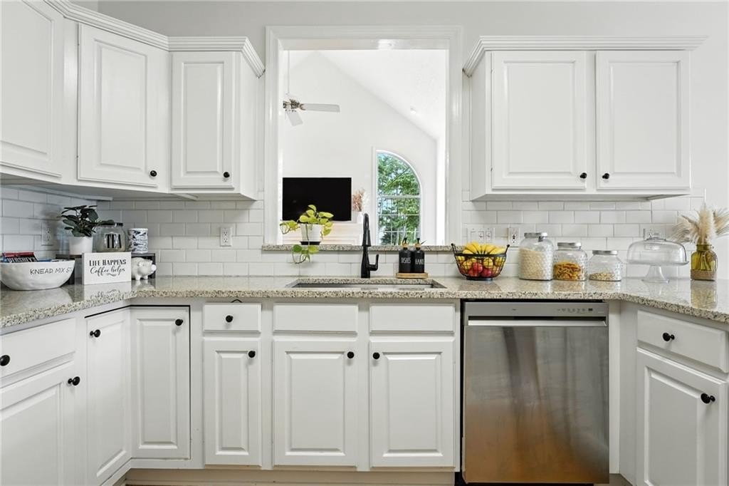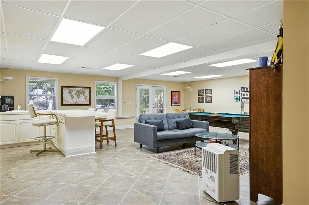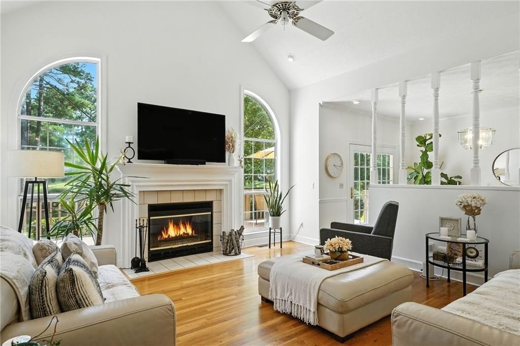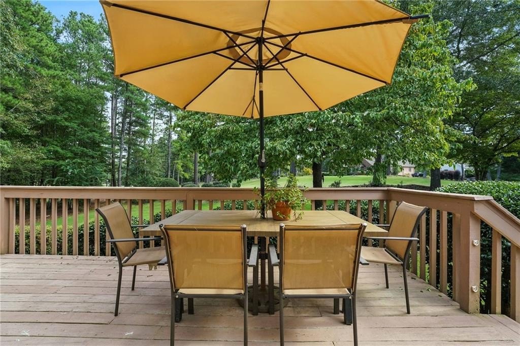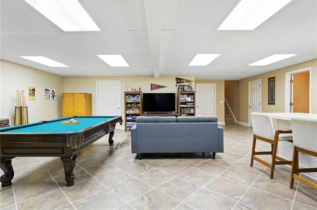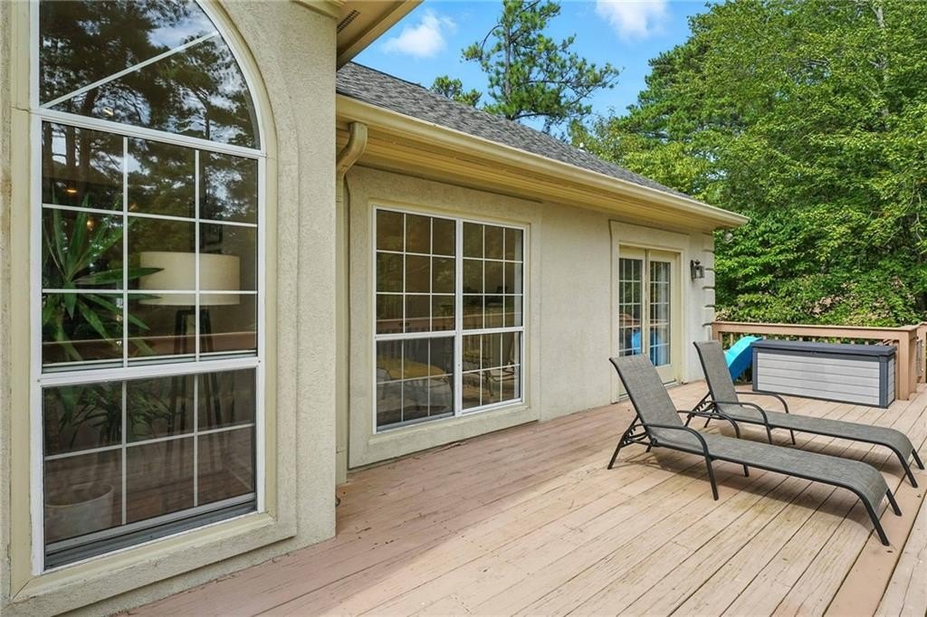 Enjoy country club living in this beautifully updated 3-bedroom, 3.5-bath ranch on a half-acre cul-de-sac lot overlooking the 18th hole of Fairfield Plantation. Filled with natural light, this home features fresh interior paint throughout, vaulted ceilings in the great room with a large cozy fireplace, and an updated kitchen with new appliances, a breakfast nook, bar seating, and a separate formal dining room. Both the dining room and the master suite feature double French doors that open to a huge deck with views of the lush green backyard. The master also includes double vanities, a walk-in shower, and a jetted tub. The oversized garage provides space for cars, golf carts, motorcycles, tools, and even a workshop. The terrace level is designed for entertaining with French doors, windows, a wet bar, full bath, bridge table, regulation pool table with accessories, and an entertainment center perfect for movie nights or game days. A bonus unfinished area is divided into two sections that can easily be converted into additional bedrooms, a workshop, or studio space, plus plenty of storage. Outside, you’ll enjoy mature landscaping, flower beds, and room for outdoor living and expansion. This property is the only home in Fairfield Plantation with a private golf cart drive that provides direct access to the golf course and clubhouse area, which features a restaurant, pool, and tennis courts. Fairfield Plantation offers 24/7 gated security, a championship golf course, clubhouse and marina with restaurants and bar, tennis and pickleball courts, pools, two lakes with boating and fishing, and a full social calendar—all less than an hour from Atlanta and the airport.