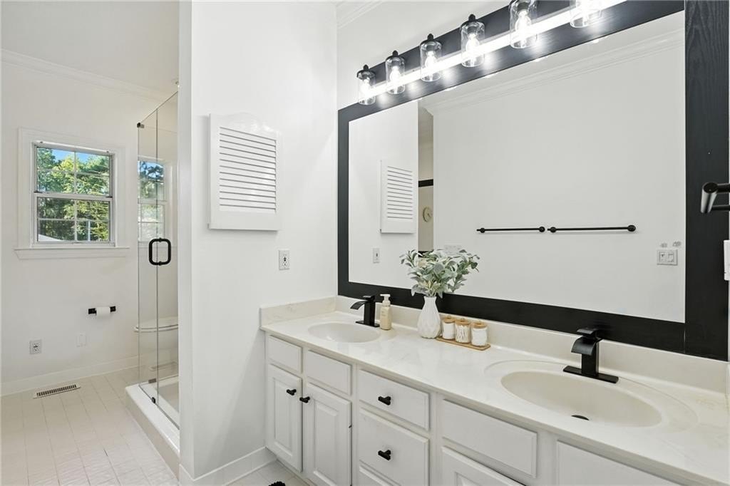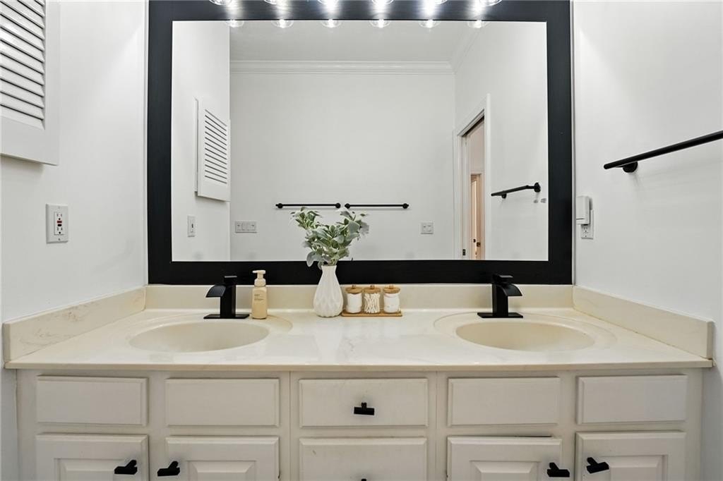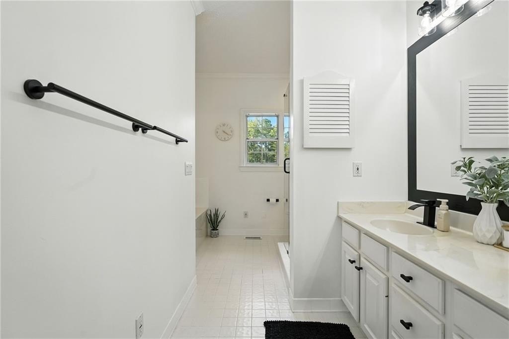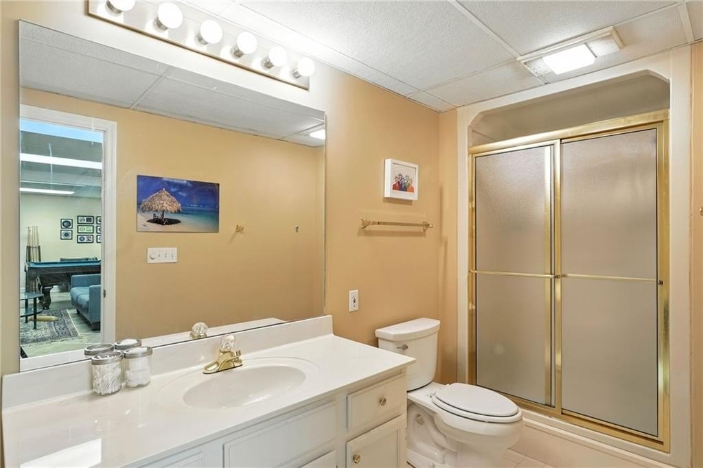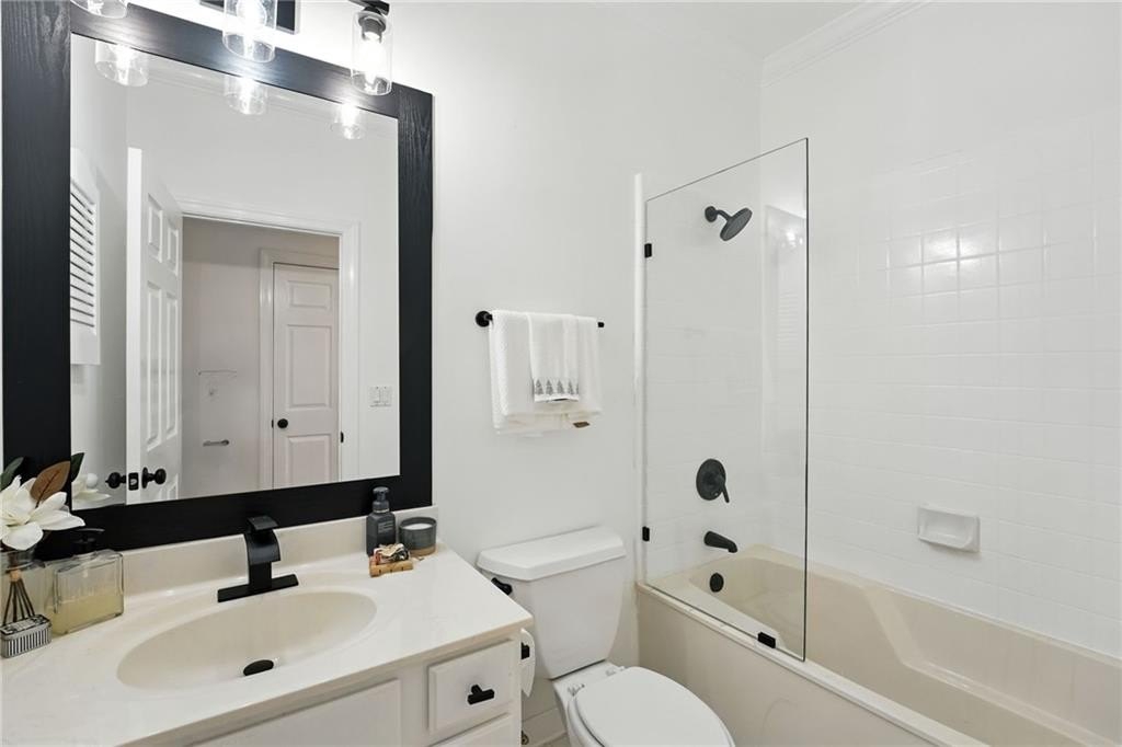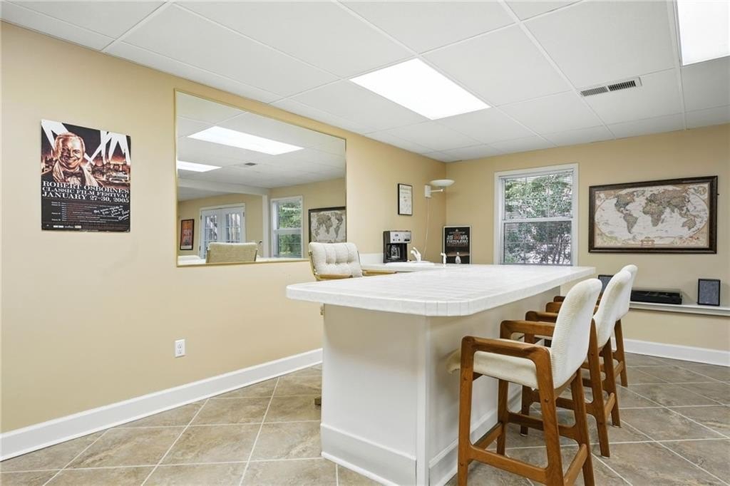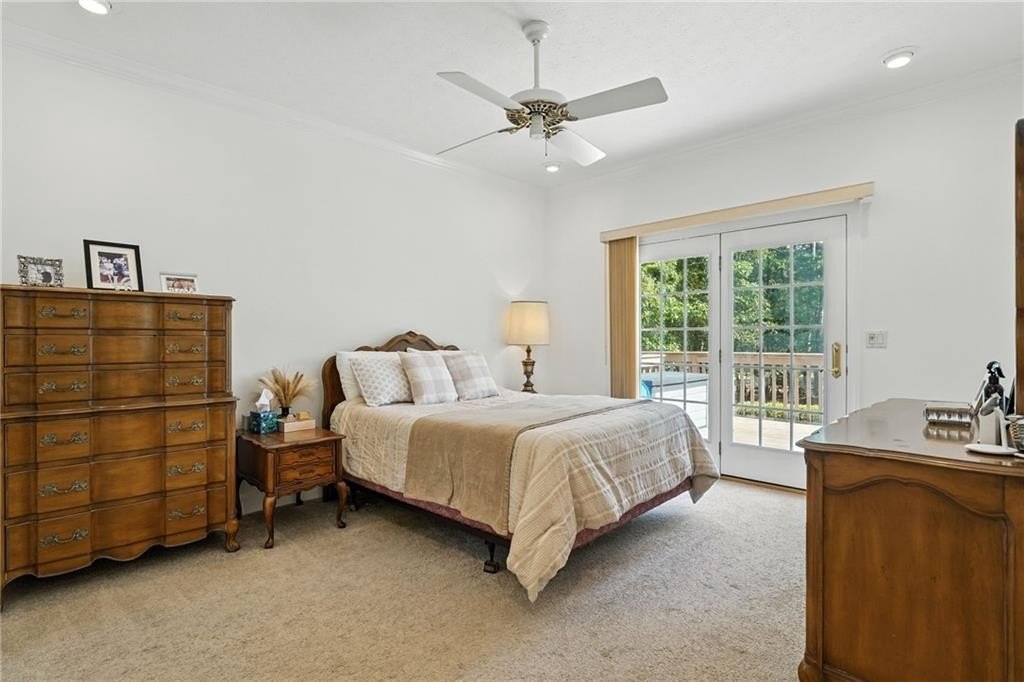 Enjoy country club living in this beautifully updated 3-bedroom, 3.5-bath ranch on a half-acre cul-de-sac lot overlooking the 18th hole of Fairfield Plantation. Filled with natural light, this home features fresh interior paint throughout, vaulted ceilings in the great room with a large cozy fireplace, and an updated kitchen with new appliances, a breakfast nook, bar seating, and a separate formal dining room. Both the dining room and the master suite feature double French doors that open to a huge deck with views of the lush green backyard. The master also includes double vanities, a walk-in shower, and a jetted tub. The oversized garage provides space for cars, golf carts, motorcycles, tools, and even a workshop. The terrace level is designed for entertaining with French doors, windows, a wet bar, full bath, bridge table, regulation pool table with accessories, and an entertainment center perfect for movie nights or game days. A bonus unfinished area is divided into two sections that can easily be converted into additional bedrooms, a workshop, or studio space, plus plenty of storage. Outside, you’ll enjoy mature landscaping, flower beds, and room for outdoor living and expansion. This property is the only home in Fairfield Plantation with a private golf cart drive that provides direct access to the golf course and clubhouse area, which features a restaurant, pool, and tennis courts. Fairfield Plantation offers 24/7 gated security, a championship golf course, clubhouse and marina with restaurants and bar, tennis and pickleball courts, pools, two lakes with boating and fishing, and a full social calendar—all less than an hour from Atlanta and the airport.