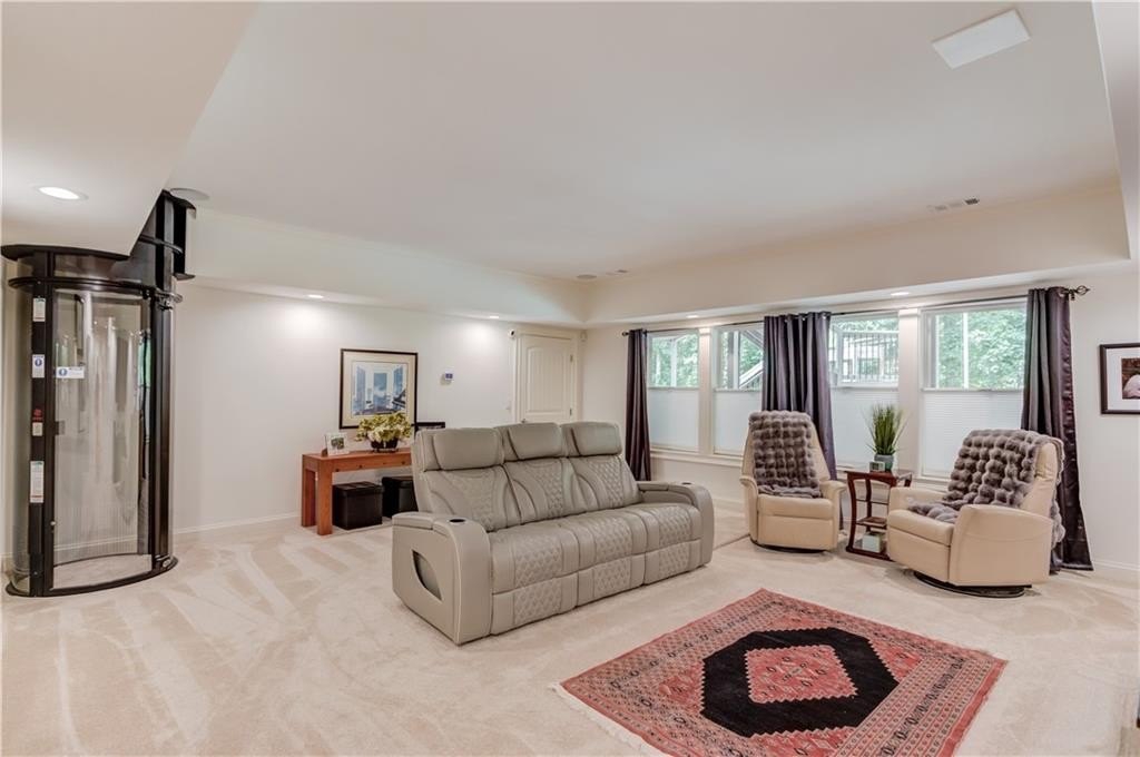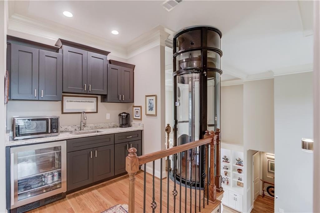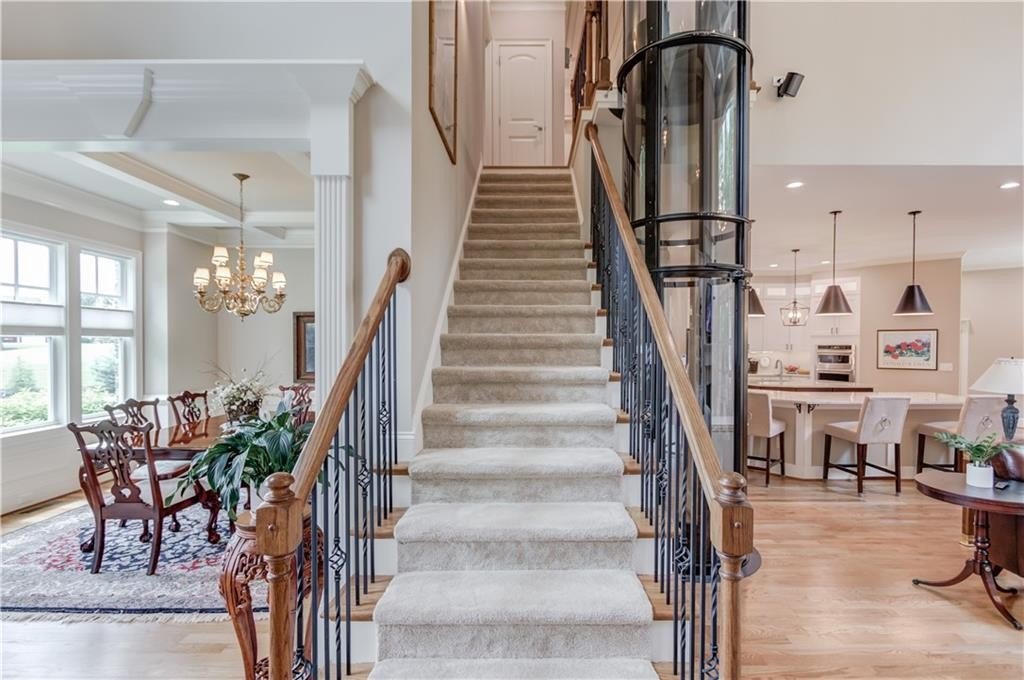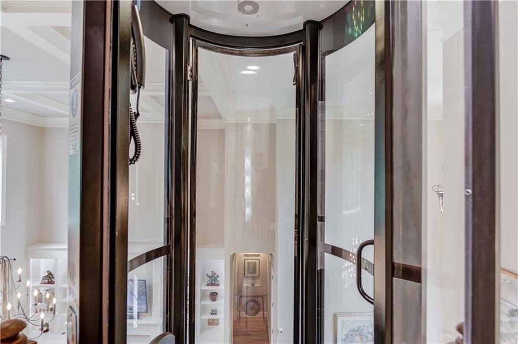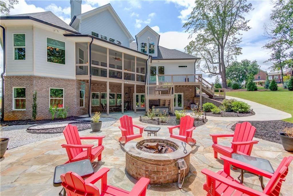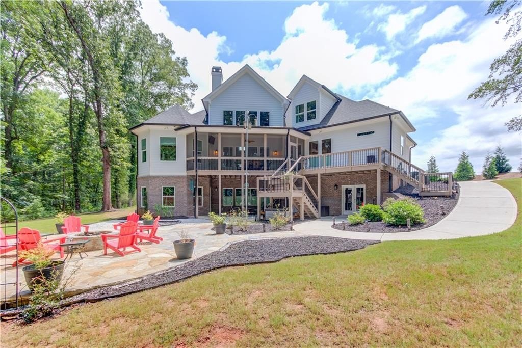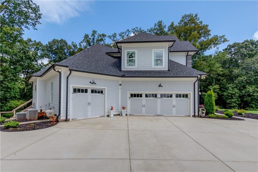 Nestled on nearly two acres in an exclusive gated community, this 4 bedroom, 4 and a half bath estate offers refined living across three impeccably finished levels. A pneumatic elevator provides effortless access to every floor, while each bedroom enjoys a private full bath and walk-in closet. The main living area is bathed in natural light, featuring a marble fireplace and custom built-ins, and flows seamlessly to a screened porch overlooking a stone fire pit and lush, professionally landscaped grounds, with extreme privacy from both the porch and backyard. The chef’s kitchen is a masterpiece, boasting KitchenAid appliances, an LG ThinQ refrigerator, double oven, warming drawer/steamer, select custom cabinet inserts, soft-close cabinetry, a powerful yet quiet vent hood, an island with sink, instant hot water, and strategically placed outlets for maximum functionality. The generous owner’s suite features a tray ceiling with lighting, while the spa inspired bath offers an oversized tile shower, separate vanities, towel warming rack, and a washer/dryer in the walk-in closet. Upstairs, a coffee bar with sink and beverage cooler adds a touch of convenience and luxury, while abundant storage and thoughtful design enhance daily living. No detail has been overlooked from air purifiers integrated into the air handlers, whole home dehumidifier, CAT 5 wiring, and surround sound, to a full irrigation system and strategically placed exterior water access. The finished terrace level includes a living area, craft room, full bath, kitchenette/bar, and workshop with woodworking dust collector, plus additional storage for a golf cart. With its private entrance from the driveway, the terrace level could easily function as a separate living space or apartment. This residence is part of a Jackson Electric Smart Energy Efficient neighborhood, requiring the home to meet stringent energy efficiency standards. Additional features include an integrated alarm system with interior and exterior cameras providing 360-degree exterior views for ultimate peace of mind. Outside, a long private driveway leads to a 3 car garage, with ample power and space for an RV. Ideally located between I-85 and I-985, minutes from downtown Gainesville, restaurants, hospitals, and just 20 minutes to Lake Lanier, this home is where function meets luxury in perfect harmony.