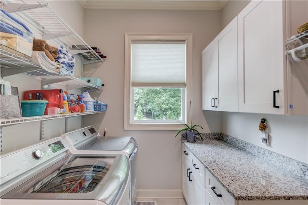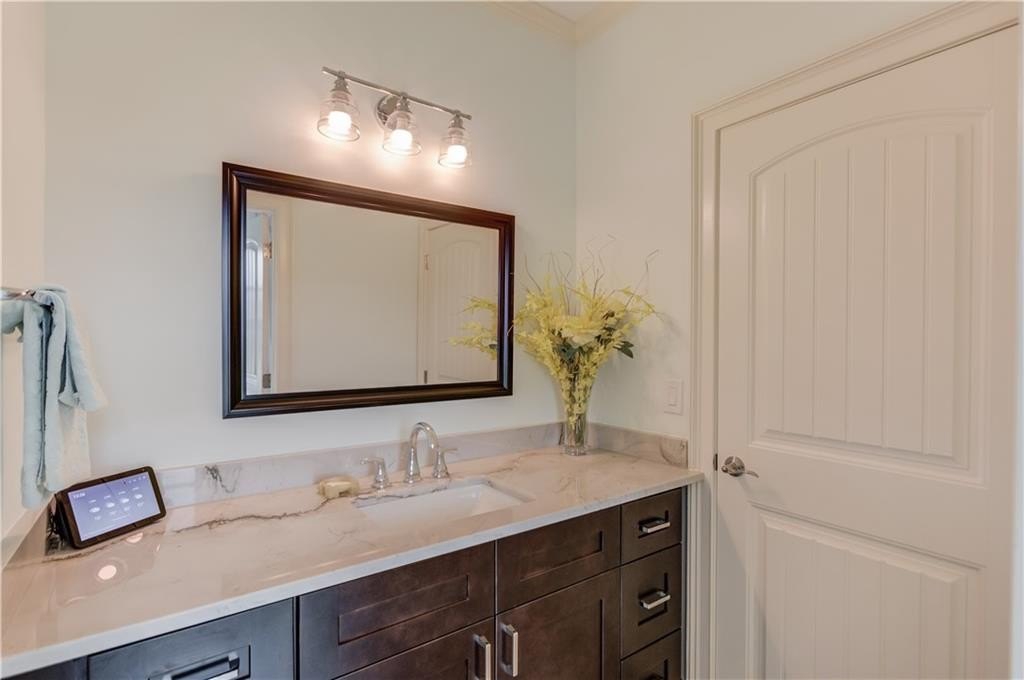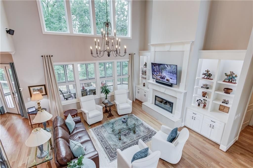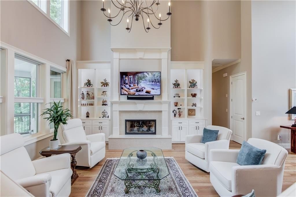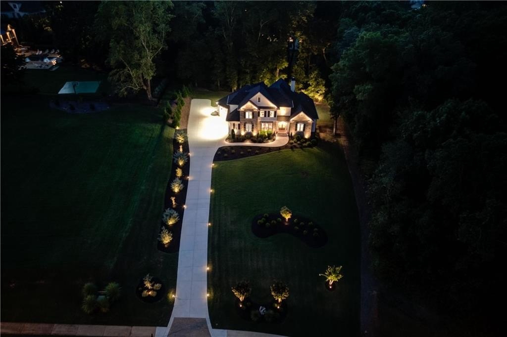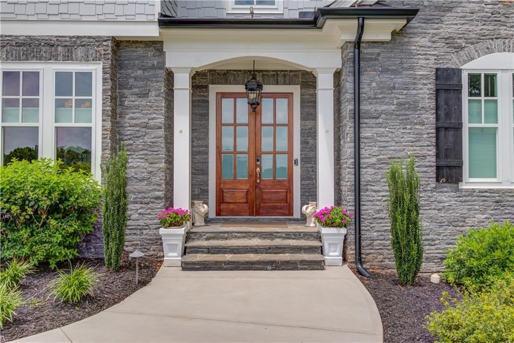 Nestled on nearly two acres in an exclusive gated community, this 4 bedroom, 4 and a half bath estate offers refined living across three impeccably finished levels. A pneumatic elevator provides effortless access to every floor, while each bedroom enjoys a private full bath and walk-in closet. The main living area is bathed in natural light, featuring a marble fireplace and custom built-ins, and flows seamlessly to a screened porch overlooking a stone fire pit and lush, professionally landscaped grounds, with extreme privacy from both the porch and backyard. The chef’s kitchen is a masterpiece, boasting KitchenAid appliances, an LG ThinQ refrigerator, double oven, warming drawer/steamer, select custom cabinet inserts, soft-close cabinetry, a powerful yet quiet vent hood, an island with sink, instant hot water, and strategically placed outlets for maximum functionality. The generous owner’s suite features a tray ceiling with lighting, while the spa inspired bath offers an oversized tile shower, separate vanities, towel warming rack, and a washer/dryer in the walk-in closet. Upstairs, a coffee bar with sink and beverage cooler adds a touch of convenience and luxury, while abundant storage and thoughtful design enhance daily living. No detail has been overlooked from air purifiers integrated into the air handlers, whole home dehumidifier, CAT 5 wiring, and surround sound, to a full irrigation system and strategically placed exterior water access. The finished terrace level includes a living area, craft room, full bath, kitchenette/bar, and workshop with woodworking dust collector, plus additional storage for a golf cart. With its private entrance from the driveway, the terrace level could easily function as a separate living space or apartment. This residence is part of a Jackson Electric Smart Energy Efficient neighborhood, requiring the home to meet stringent energy efficiency standards. Additional features include an integrated alarm system with interior and exterior cameras providing 360-degree exterior views for ultimate peace of mind. Outside, a long private driveway leads to a 3 car garage, with ample power and space for an RV. Ideally located between I-85 and I-985, minutes from downtown Gainesville, restaurants, hospitals, and just 20 minutes to Lake Lanier, this home is where function meets luxury in perfect harmony.