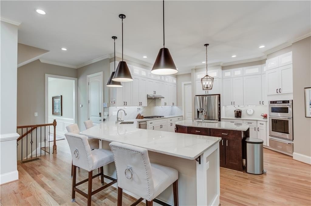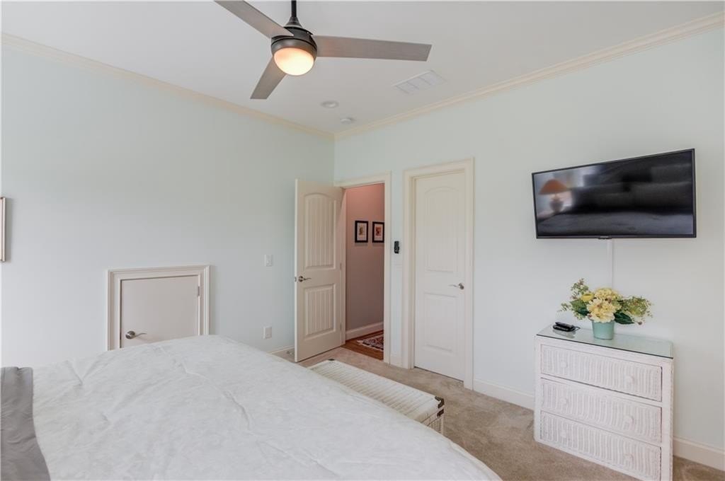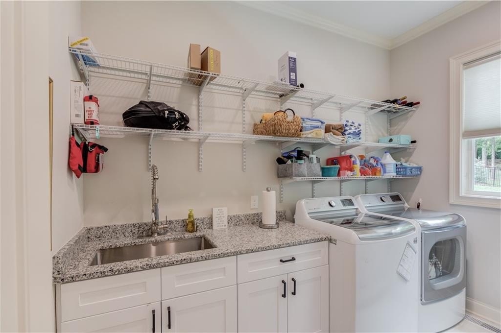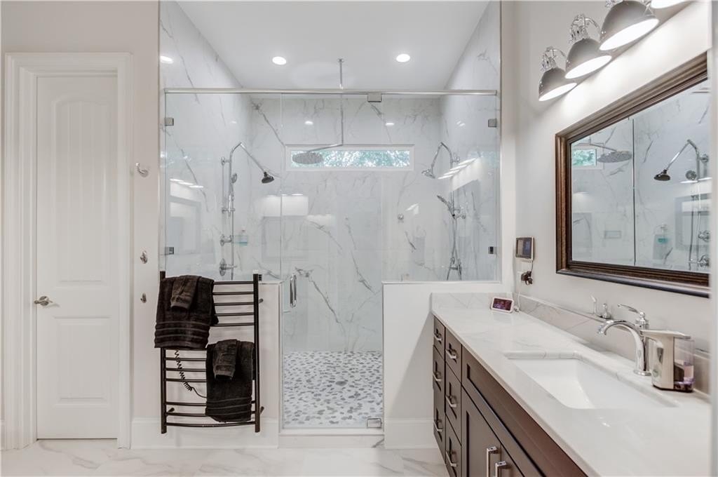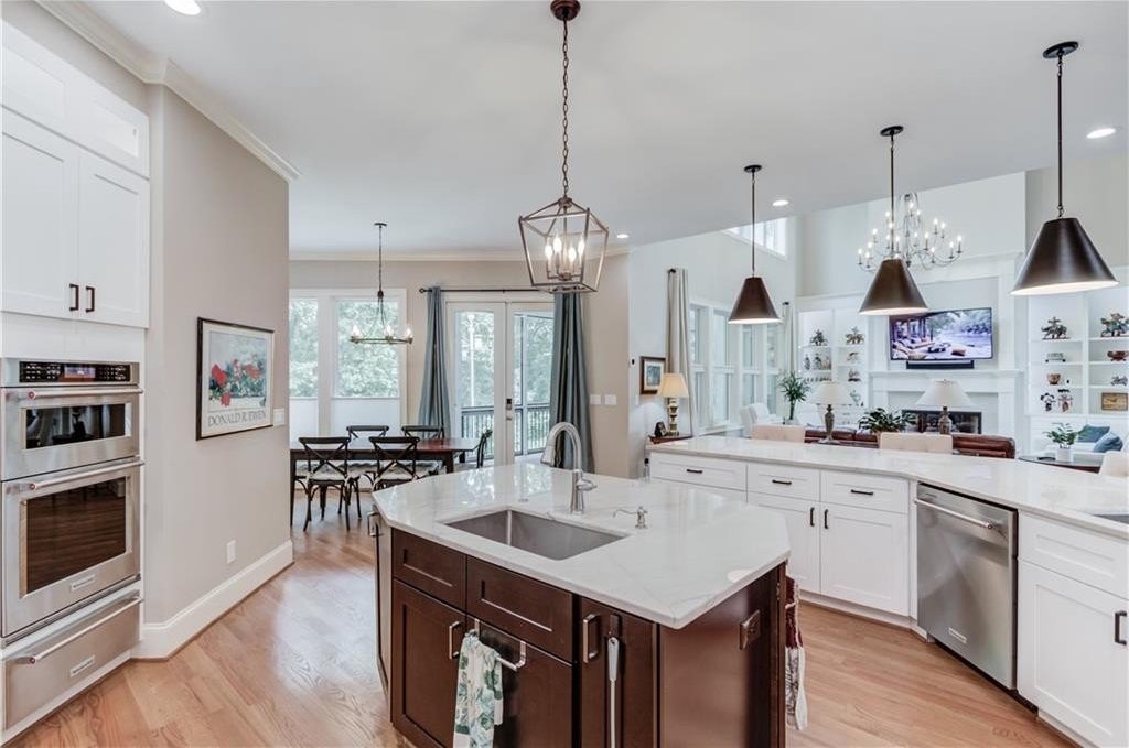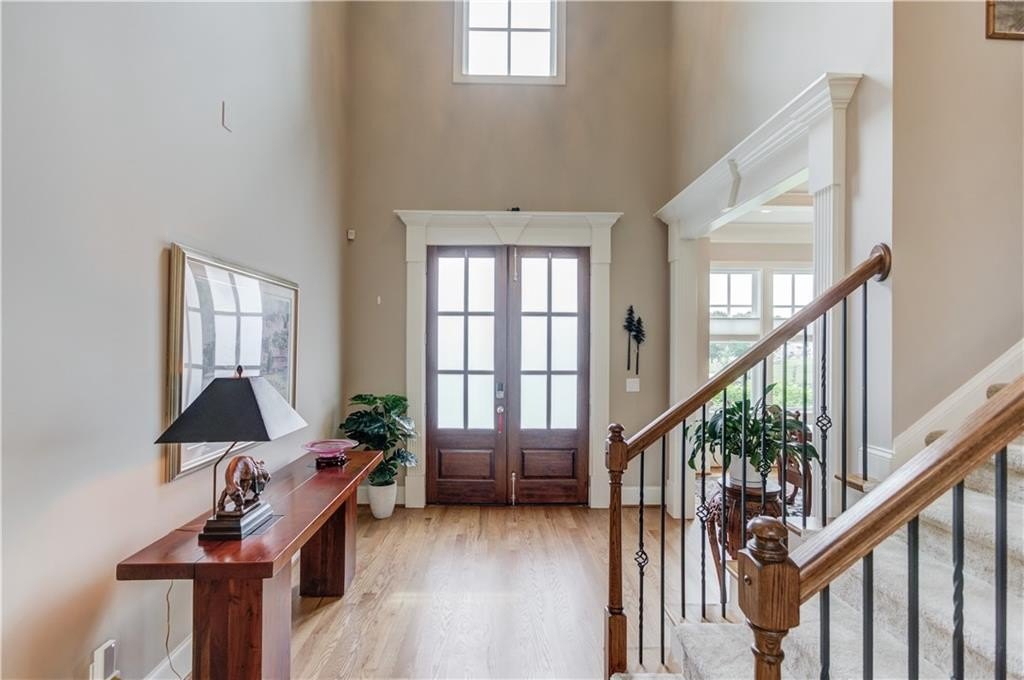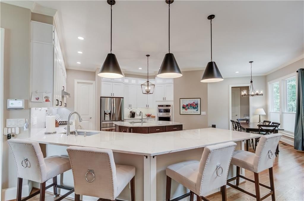 Nestled on nearly two acres in an exclusive gated community, this 4 bedroom, 4 and a half bath estate offers refined living across three impeccably finished levels. A pneumatic elevator provides effortless access to every floor, while each bedroom enjoys a private full bath and walk-in closet. The main living area is bathed in natural light, featuring a marble fireplace and custom built-ins, and flows seamlessly to a screened porch overlooking a stone fire pit and lush, professionally landscaped grounds, with extreme privacy from both the porch and backyard. The chef’s kitchen is a masterpiece, boasting KitchenAid appliances, an LG ThinQ refrigerator, double oven, warming drawer/steamer, select custom cabinet inserts, soft-close cabinetry, a powerful yet quiet vent hood, an island with sink, instant hot water, and strategically placed outlets for maximum functionality. The generous owner’s suite features a tray ceiling with lighting, while the spa inspired bath offers an oversized tile shower, separate vanities, towel warming rack, and a washer/dryer in the walk-in closet. Upstairs, a coffee bar with sink and beverage cooler adds a touch of convenience and luxury, while abundant storage and thoughtful design enhance daily living. No detail has been overlooked from air purifiers integrated into the air handlers, whole home dehumidifier, CAT 5 wiring, and surround sound, to a full irrigation system and strategically placed exterior water access. The finished terrace level includes a living area, craft room, full bath, kitchenette/bar, and workshop with woodworking dust collector, plus additional storage for a golf cart. With its private entrance from the driveway, the terrace level could easily function as a separate living space or apartment. This residence is part of a Jackson Electric Smart Energy Efficient neighborhood, requiring the home to meet stringent energy efficiency standards. Additional features include an integrated alarm system with interior and exterior cameras providing 360-degree exterior views for ultimate peace of mind. Outside, a long private driveway leads to a 3 car garage, with ample power and space for an RV. Ideally located between I-85 and I-985, minutes from downtown Gainesville, restaurants, hospitals, and just 20 minutes to Lake Lanier, this home is where function meets luxury in perfect harmony.