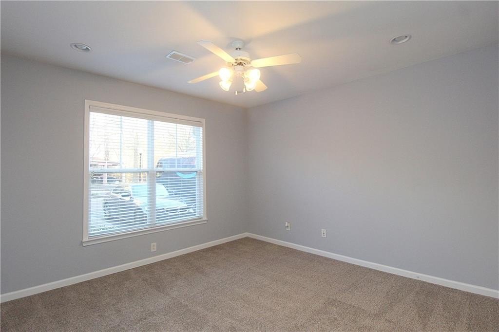 Fabulous location and priced to sell. Beautiful STEPLESS 1 bedroom/1.5 bath ground floor condo tucked away in a quiet community is close to Truist Stadium, The Battery and everything in Vinings/Smyrna. Home offers a spacious eat-in kitchen, an ADDITIONAL ROOM as an office/den, a family room with gas fireplace/logs, hardwood floors throughout, new carpet in the bedroom. 2021 NEW WATER HEATER. Enjoy relaxing on the covered outdoor patio or enjoy the pool. The clubhouse has a large recreation gathering area, an extensive workout area, rocking chair front porch, grill for outdoor cooking, and outdoor pool showers. There is a dog park. LOW HOA FEES include pool, clubhouse, WATER, sewer, GAS, and TRASH. Nest Smart Thermostat. Assigned parking right in front of convenient ground floor unit close to the entry way. Location is close to walking trails. Distance to the airport is 22 miles. Excellent opportunity for out of town flight crews using Atlanta as their HUB.