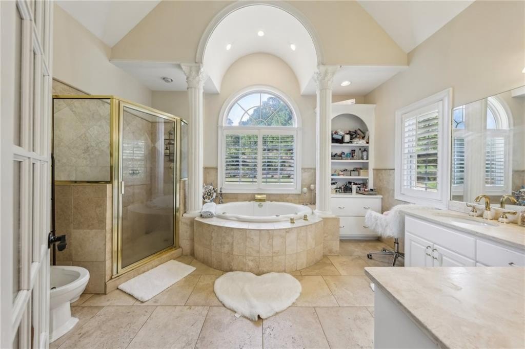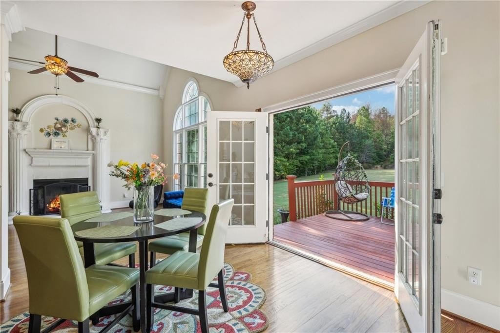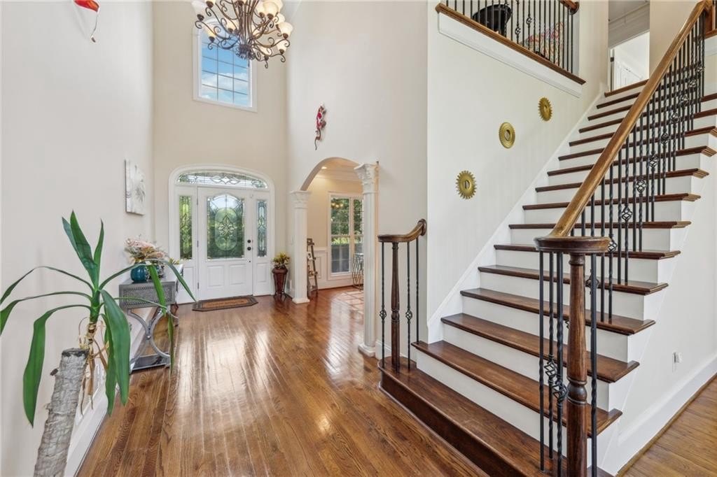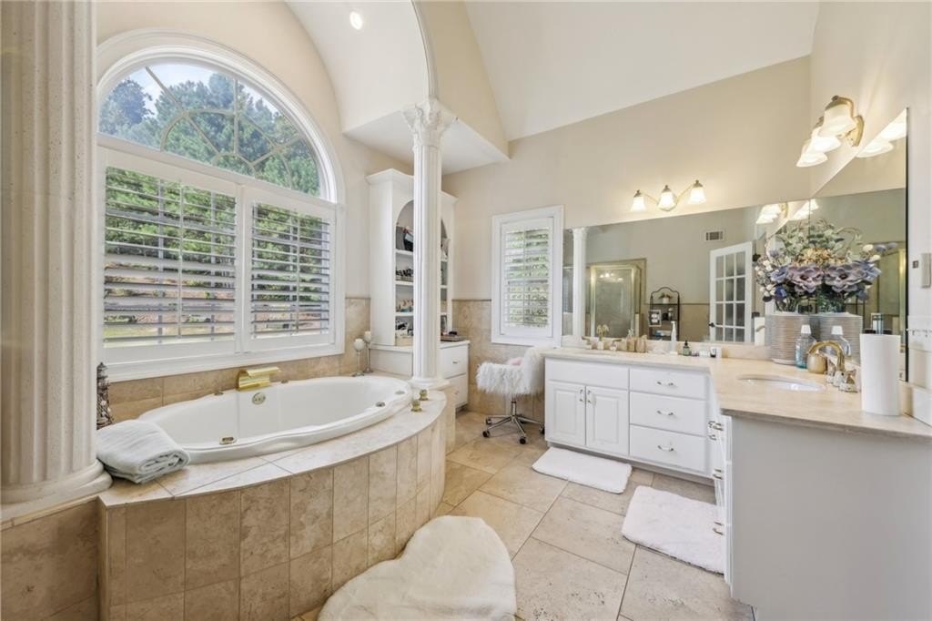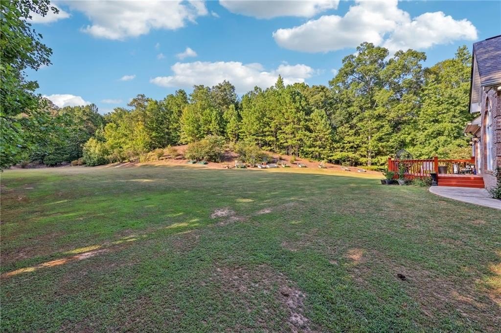 Welcome home to this stunning, custom built 4-side brick estate home in Villa Rica. This elegant home features 5 bedrooms, 4 full bathrooms, and 2 half bathrooms (1 Jack and Jill bathroom) and approx. 4,850 square feet of luxurious living space, situated on 5 private and serene acres. Main level features a dramatic 2 story hardwood foyer and soaring ceiling flanked by a formal dining area with arched doorway, decorative columns, art niches, intricate inlaid tile and hardwood floor and sophisticated trim work throughout. Just beyond the foyer lies the grand gathering room with coffered ceiling & tower of windows that drenches it in natural light. From grand room there is an open view to the breakfast area and kitchen. The gourmet kitchen offers cherry cabinets, stone countertops, stainless steel appliances, large pantry, and breakfast bar. Just beyond the kitchen is the vaulted Keeping room with decorative wood burning fireplace and bar area. French doors open to the newly renovated deck overlooking the private, level 5 acre back yard. The main level also features the spacious primary suite boasts a sitting area and luxurious ensuite with whirlpool spa tub, large separate tile shower, heated ceramic tile floors, dual walk-in closets and double vanities. The upper level features a loft/office area along with 2 secondary bedrooms, one which is a guest suite that includes a patio/balcony and full bath. Last but not least, the expansive terrace level presents like a 2nd home with a full kitchen, 2 bedrooms, 2 full bathrooms, surround sound media/game/billiards room that would be perfect for in-law or au pair suite. Home is also equipped with built in 7 camera security system and is conveniently located near schools, shopping, dining and. I-20 for quick commuting.