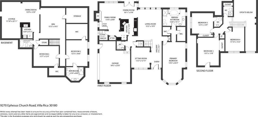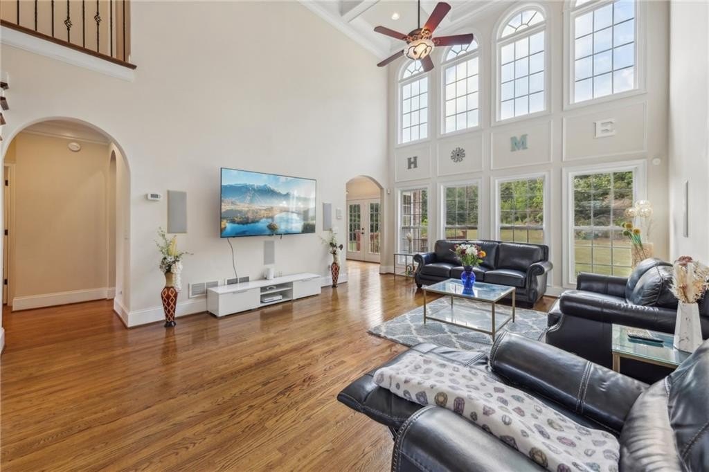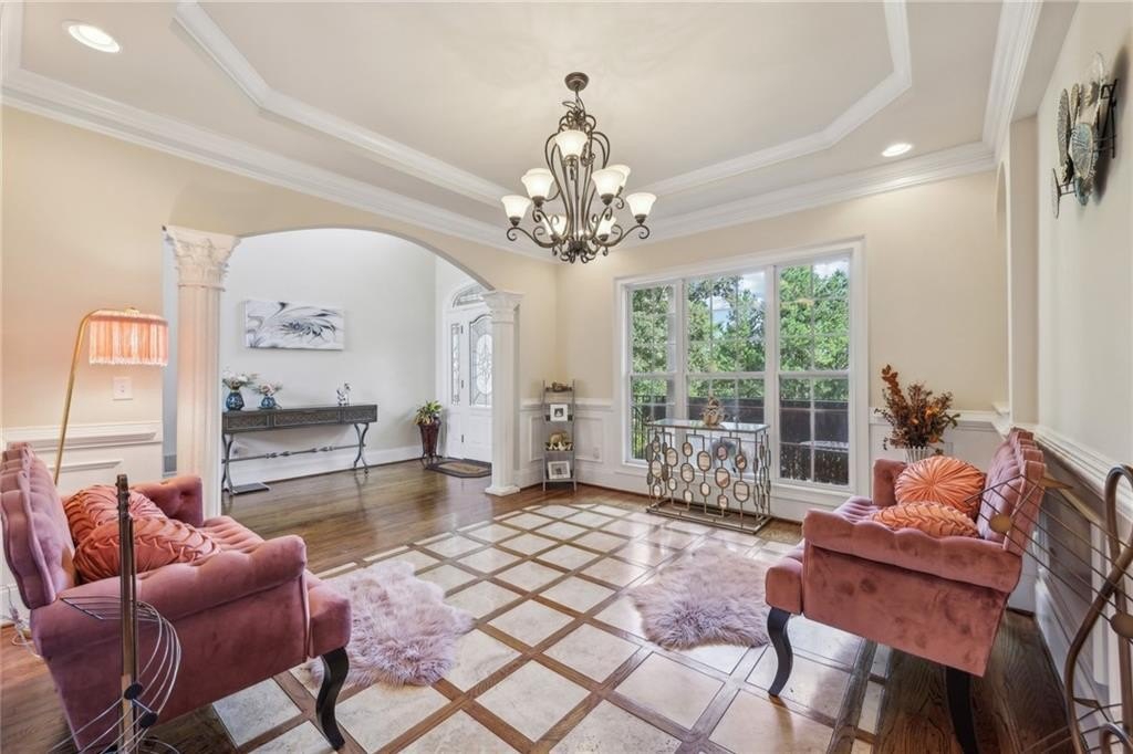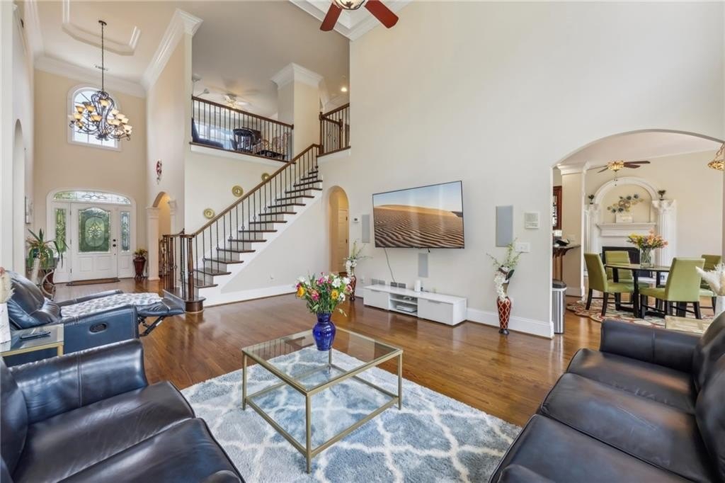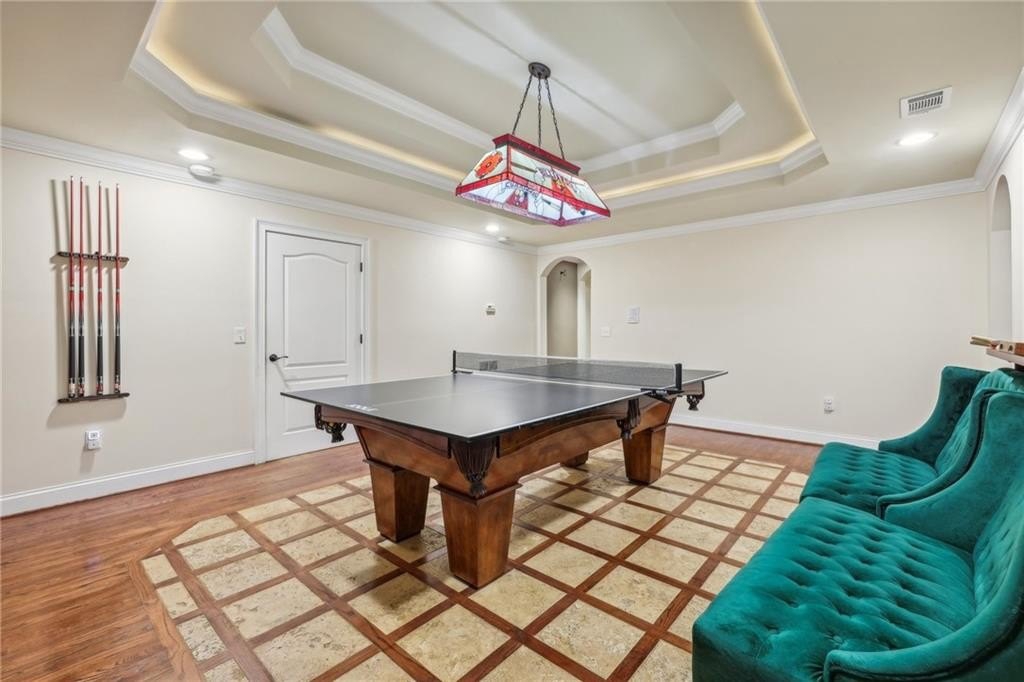 Welcome home to this stunning, custom built 4-side brick estate home in Villa Rica. This elegant home features 5 bedrooms, 4 full bathrooms, and 2 half bathrooms (1 Jack and Jill bathroom) and approx. 4,850 square feet of luxurious living space, situated on 5 private and serene acres. Main level features a dramatic 2 story hardwood foyer and soaring ceiling flanked by a formal dining area with arched doorway, decorative columns, art niches, intricate inlaid tile and hardwood floor and sophisticated trim work throughout. Just beyond the foyer lies the grand gathering room with coffered ceiling & tower of windows that drenches it in natural light. From grand room there is an open view to the breakfast area and kitchen. The gourmet kitchen offers cherry cabinets, stone countertops, stainless steel appliances, large pantry, and breakfast bar. Just beyond the kitchen is the vaulted Keeping room with decorative wood burning fireplace and bar area. French doors open to the newly renovated deck overlooking the private, level 5 acre back yard. The main level also features the spacious primary suite boasts a sitting area and luxurious ensuite with whirlpool spa tub, large separate tile shower, heated ceramic tile floors, dual walk-in closets and double vanities. The upper level features a loft/office area along with 2 secondary bedrooms, one which is a guest suite that includes a patio/balcony and full bath. Last but not least, the expansive terrace level presents like a 2nd home with a full kitchen, 2 bedrooms, 2 full bathrooms, surround sound media/game/billiards room that would be perfect for in-law or au pair suite. Home is also equipped with built in 7 camera security system and is conveniently located near schools, shopping, dining and. I-20 for quick commuting.