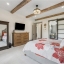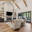 The main level features a luxurious master suite with a spa-inspired bath, highlighted by a grand two-sided shower and an expansive walk-in closet, offering true main-floor living. Entertain with ease in the vaulted great room, adorned with striking custom beams and a cozy fireplace, seamlessly connected to a gourmet chef’s kitchen featuring premium appliances, oversized island, custom cabinetry, and a hidden large walk-in pantry for all your storage needs.