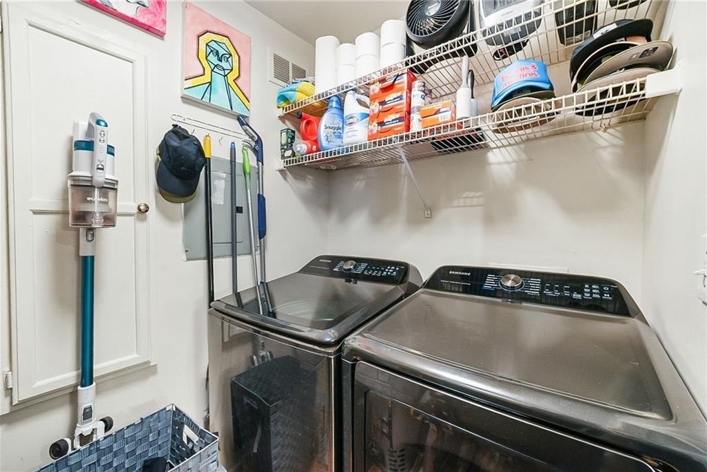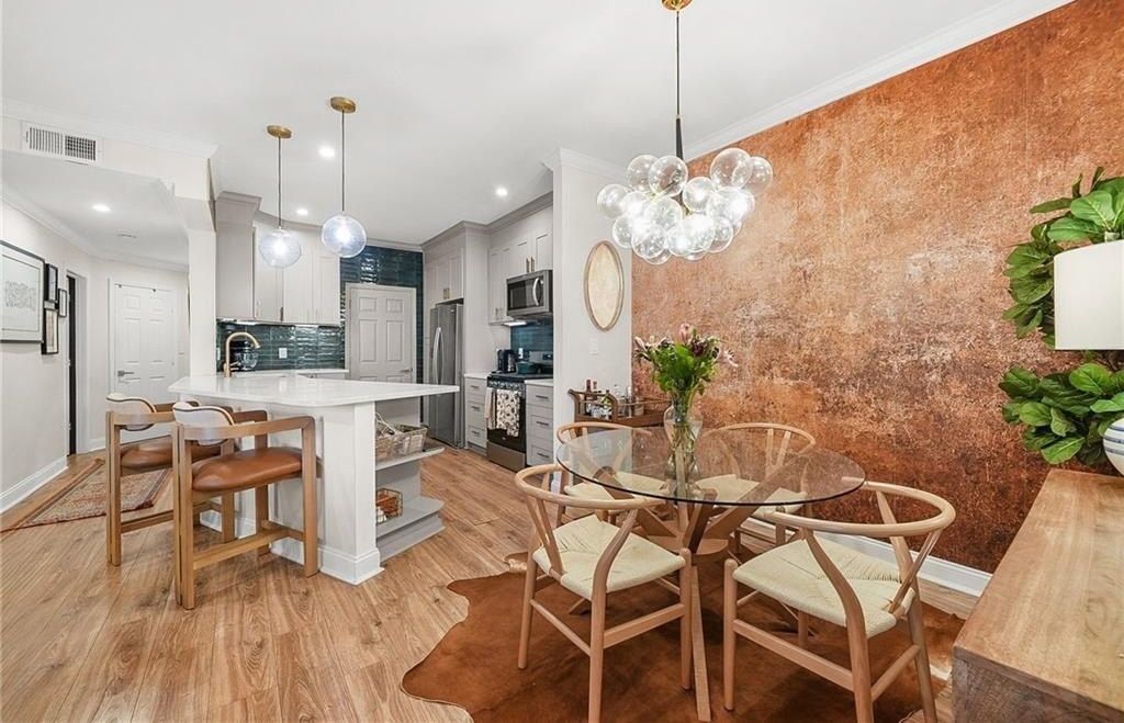Completely renovated condo in the heart of historic McGill Park offering modern finishes, major system updates, and true move-in-ready condition. This 2-bedroom, 2-bath residence underwent a full gut renovation in 2022, transforming the entire home with thoughtful upgrades and high-quality finishes throughout. The open living space features hardwood floors, popcorn ceiling removal, recessed (can) lighting, updated light fixtures, new interior doors and hardware, and fresh paint throughout, creating a clean and contemporary feel. The fully renovated kitchen includes new cabinetry, quartzite countertops, a tile backsplash, stainless steel Whirlpool appliances, and an updated sink and faucet-designed for both everyday living and entertaining. Both bathrooms were completely gutted and renovated with new vanities, updated tile flooring and shower surrounds, modern fixtures, and glass walk-in showers, offering a spa-like experience. Additional improvements include an upgraded electrical panel, updated plumbing throughout the kitchen and bathrooms, custom closet systems, and a washer and dryer included with the unit. The HVAC system was most recently serviced in 2024. McGill Park is a gated community offering residents a pool, fitness center, clubhouse, and secure entry. HOA fees include water, sewer, trash, pest control, and security. Ideally located minutes from downtown, Midtown, the BeltLine, and surrounded by major redevelopment, including the transformation of the nearby Atlanta Civic Center into a vibrant mixed-use destination with shops and dining. A rare opportunity to own a fully renovated condo in one of Old Fourth Ward's most established and desirable communities. Google Fiber Ready.