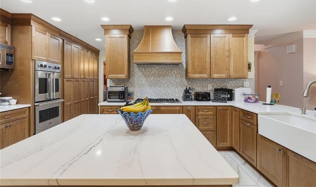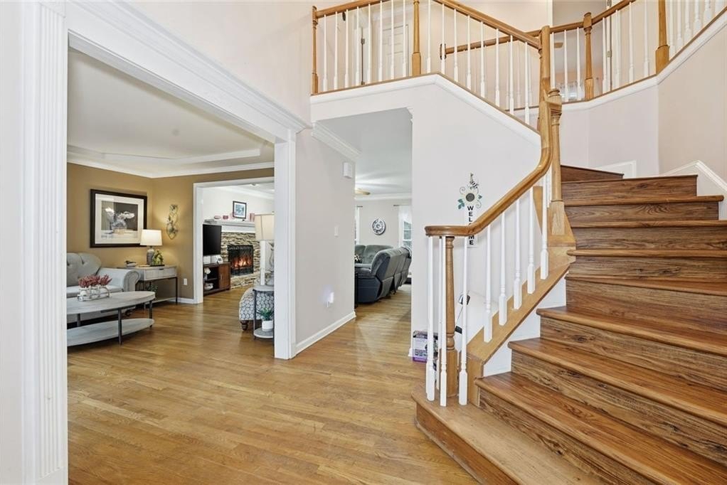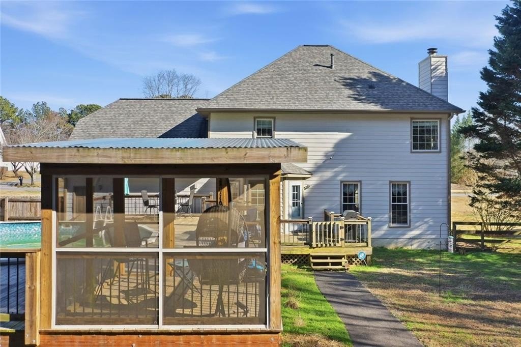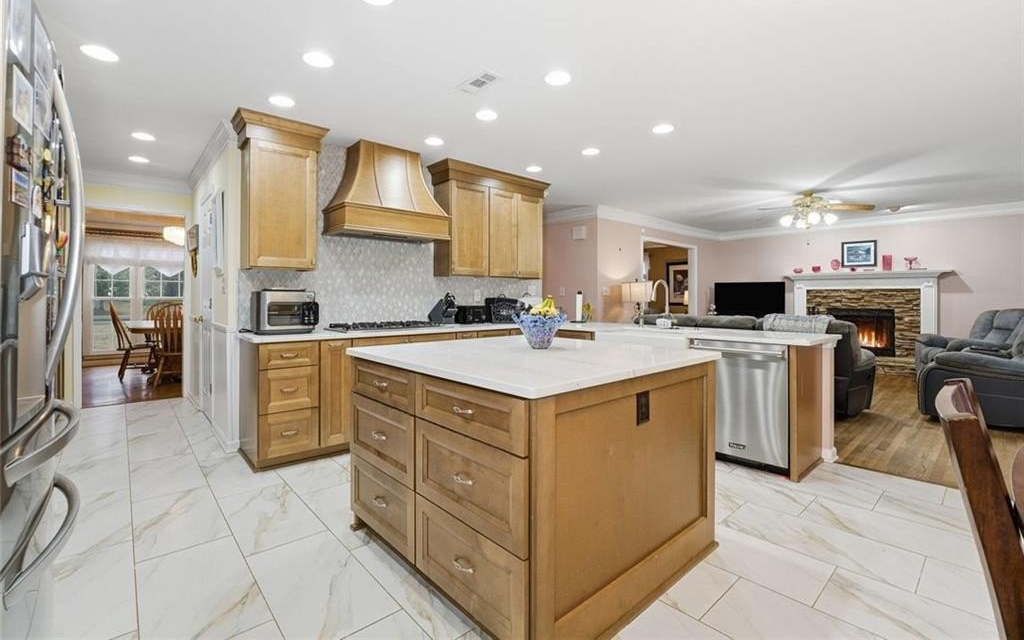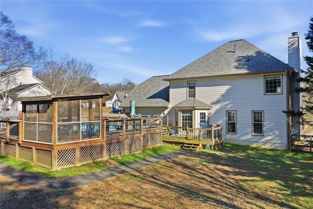 This three-sides brick home sits on a large, .746-acre lot and brings together standout updates like a fully renovated Viking kitchen, an above-ground pool with new deck surround, and no HOA-just minutes from downtown Cartersville. Step into the two-story foyer and take in the elegant staircase and classic layout designed for both daily living and entertaining. To your left, a formal dining room with tray ceiling offers space for gathering, while a separate living room gives you flexibility for work or relaxation. In the kitchen, everything has been fully updated with rich wood cabinetry, Quartz countertops, and stainless steel Viking appliances-including a gas cooktop, double oven, built-in microwave, and a statement range hood. A center island and farmhouse sink pull the space together, making this kitchen just as functional as it is sharp. Upstairs, the primary bedroom offers a private retreat with an ensuite bath that includes a soaking tub, dual vanities, and a separate walk-in shower. Out back, the fenced lot delivers room to roam. The above-ground pool features a new deck surround with both a covered and screened-in area-ideal for hosting or cooling off. A separate outbuilding is easily accessed via a paved path from the driveway and adds even more utility. Additional upgrades include an encapsulated crawlspace for energy efficiency and long-term peace of mind. And with no HOA, you have the freedom to make the space your own.