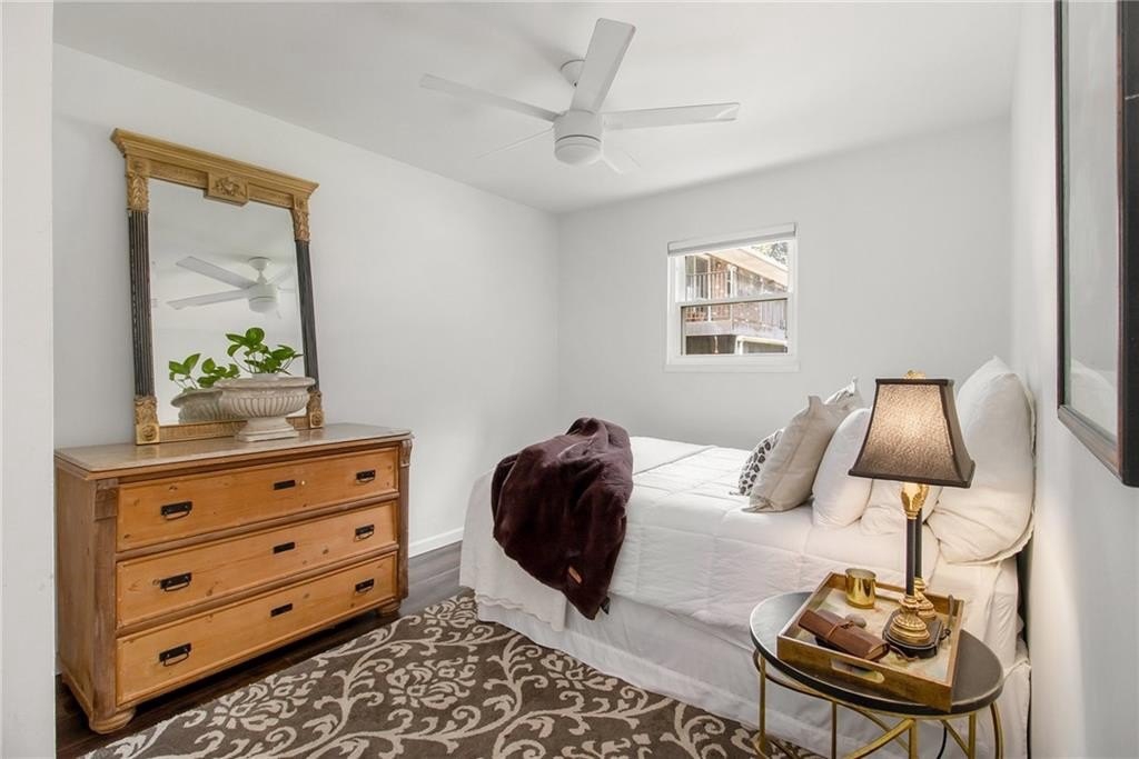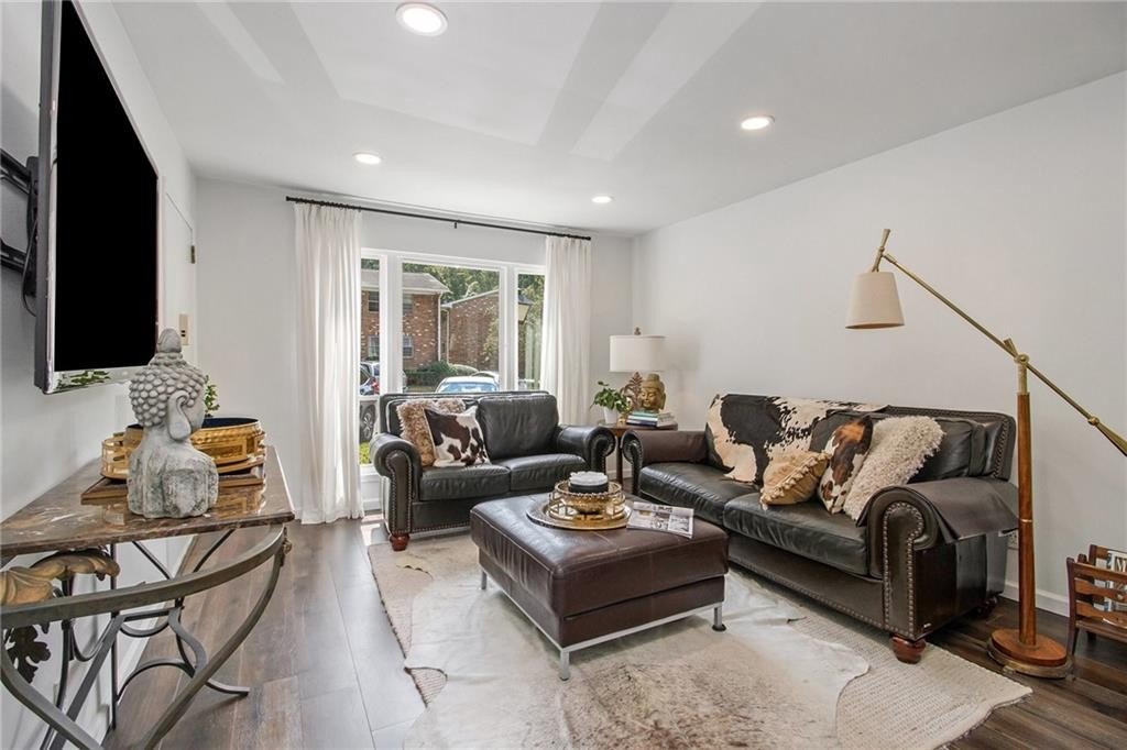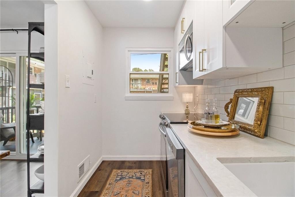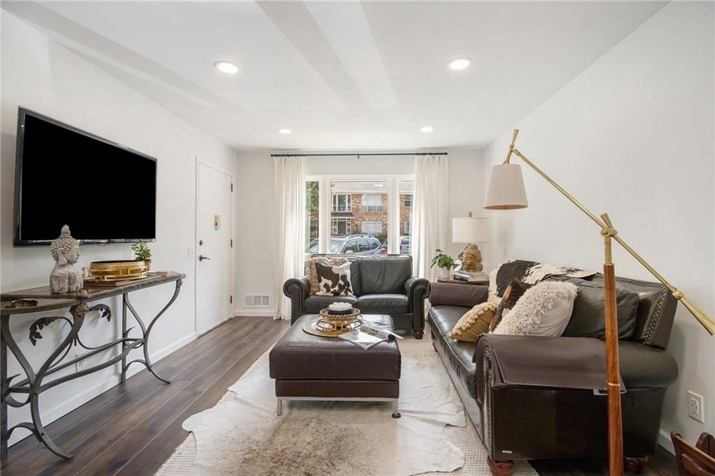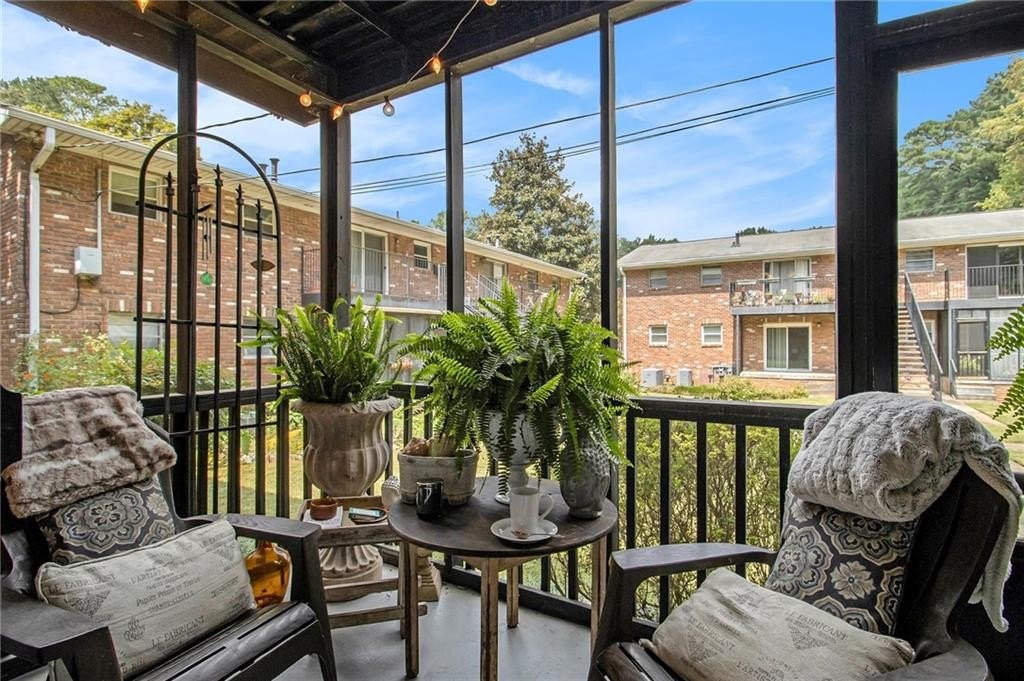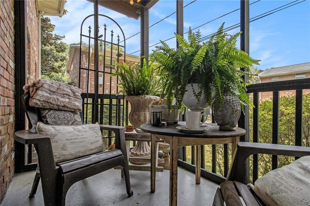 Sophisticated, To-the-Studs Renovation in the Heart of Decatur. This stunning condo showcases a complete renovation with timeless finishes and thoughtful details throughout. Hardwood flooring throughout sets the tone for bright, open living. The sun-filled living room connects seamlessly to the spacious dining area—perfect for entertaining. The chef’s kitchen features new cabinets, granite countertops, stainless steel appliances, and a walk-in pantry/storage. The oversized primary suite easily accommodates a king bed and includes a generous walk-in closet plus a walk-in Hollywood-style vanity/makeup bar. A second bedroom with ample closet space provides flexibility for guests or a home office. The spa-inspired bath features stylish tilework and custom built-in shelving for both function and flair. Enjoy morning coffee or an evening cocktail on the screened porch overlooking the charming courtyard. Additional highlights include recessed lighting, new lighting fixtures, new windows, and updated electrical. The community offers sidewalks and a walking trail, with nearby restaurants, schools of excellence, and close proximity to Downtown Decatur and Emory University.
