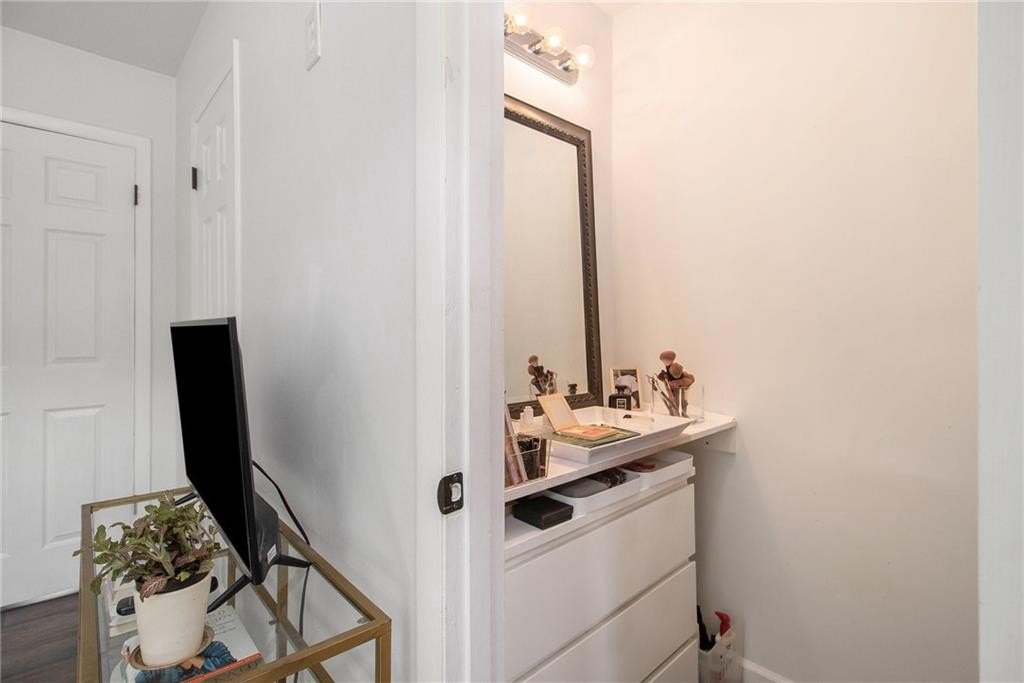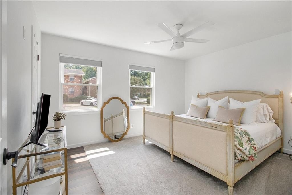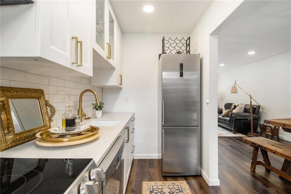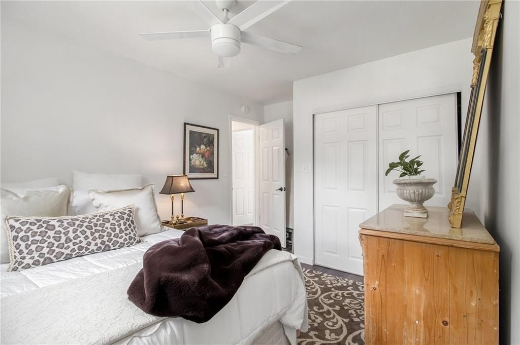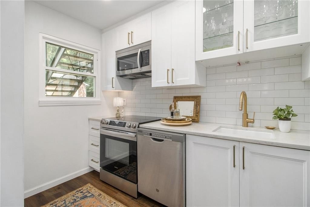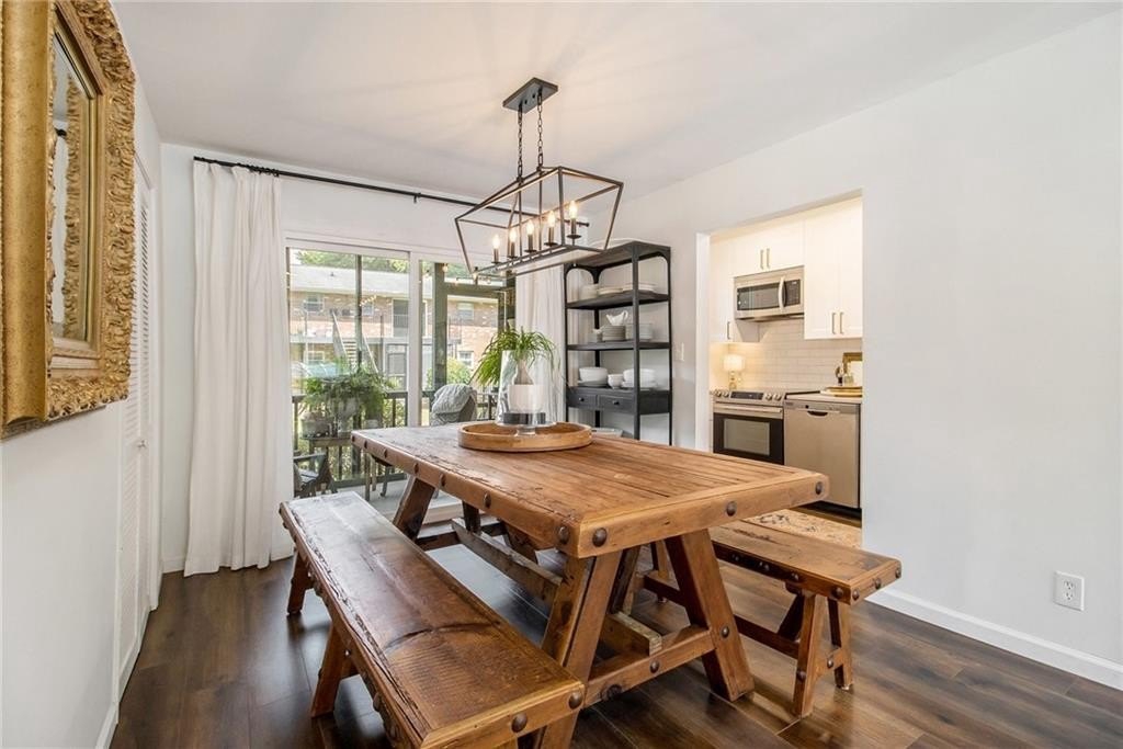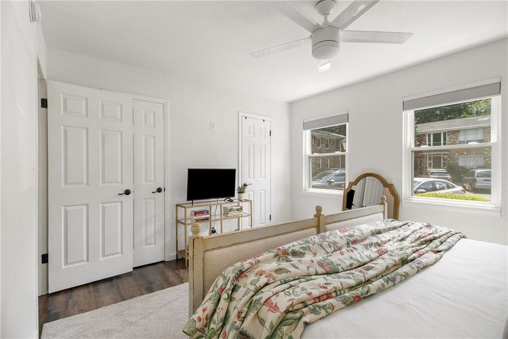 Sophisticated, To-the-Studs Renovation in the Heart of Decatur. This stunning condo showcases a complete renovation with timeless finishes and thoughtful details throughout. Hardwood flooring throughout sets the tone for bright, open living. The sun-filled living room connects seamlessly to the spacious dining area—perfect for entertaining. The chef’s kitchen features new cabinets, granite countertops, stainless steel appliances, and a walk-in pantry/storage. The oversized primary suite easily accommodates a king bed and includes a generous walk-in closet plus a walk-in Hollywood-style vanity/makeup bar. A second bedroom with ample closet space provides flexibility for guests or a home office. The spa-inspired bath features stylish tilework and custom built-in shelving for both function and flair. Enjoy morning coffee or an evening cocktail on the screened porch overlooking the charming courtyard. Additional highlights include recessed lighting, new lighting fixtures, new windows, and updated electrical. The community offers sidewalks and a walking trail, with nearby restaurants, schools of excellence, and close proximity to Downtown Decatur and Emory University.