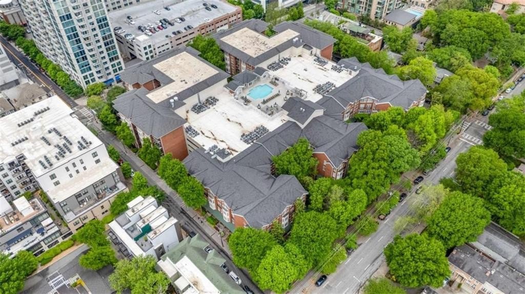 Impressive 970 sq ft condo offering one of Midtown's largest 1-bedroom layouts. Open living and dining area with hardwood floors, fresh paint, and cozy fireplace. Kitchen features granite countertops, stainless steel appliances, and ample storage. Spacious bedroom with walk-in closet and ensuite bath with soaking tub and separate shower. Juliet balcony overlooks Midtown's vibrant streetscape. Unit includes two deeded garage spaces. The Dakota offers a rooftop pool, fitness center, and landscaped courtyards in a secure, pet-friendly community. Prime location between Juniper and Piedmont, steps from Piedmont Park, the Beltline, Fox Theatre, and top dining and shopping. Move-in ready and beautifully maintained!
