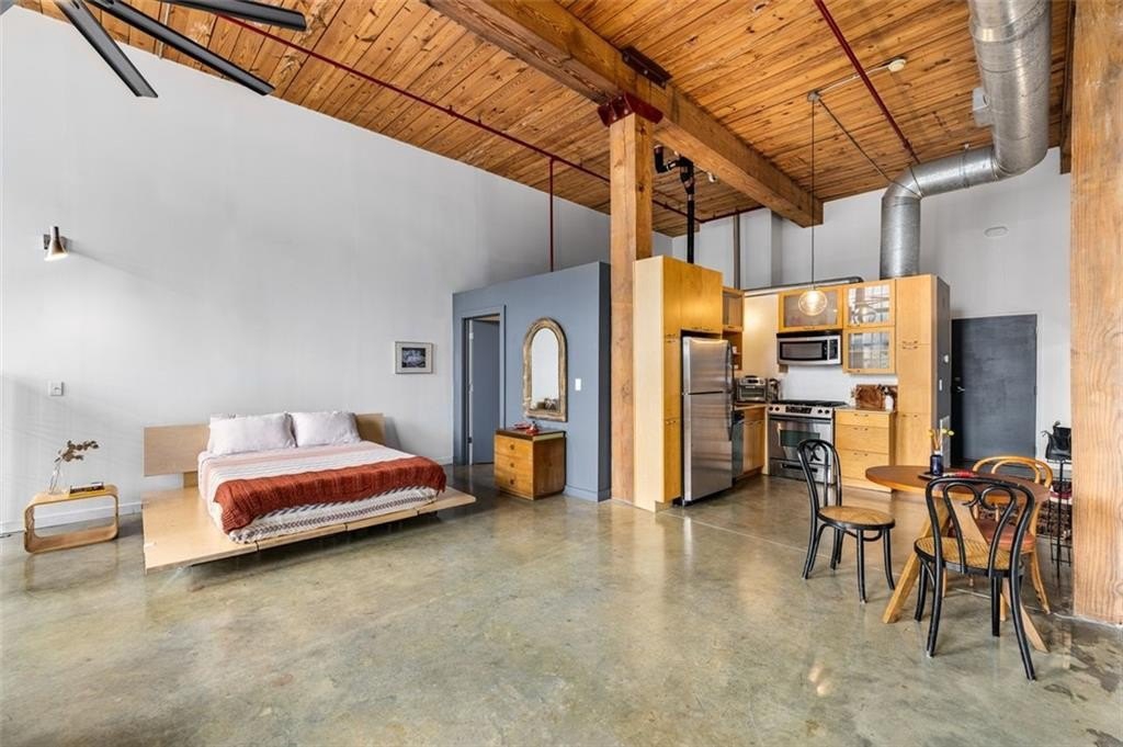 Live unapologetically at The Stacks, where raw history and modern grit collide. This industrial style loft in the iconic Fulton Cotton Mill is anything but ordinary—think 15-foot ceilings, exposed brick, concrete floors, and massive factory windows that flood the space with light and attitude. It’s a vibe: industrial bones, gas cooking, clever storage, and your own in-unit laundry room. Furnishing options? Flexible. Style? Undeniable.