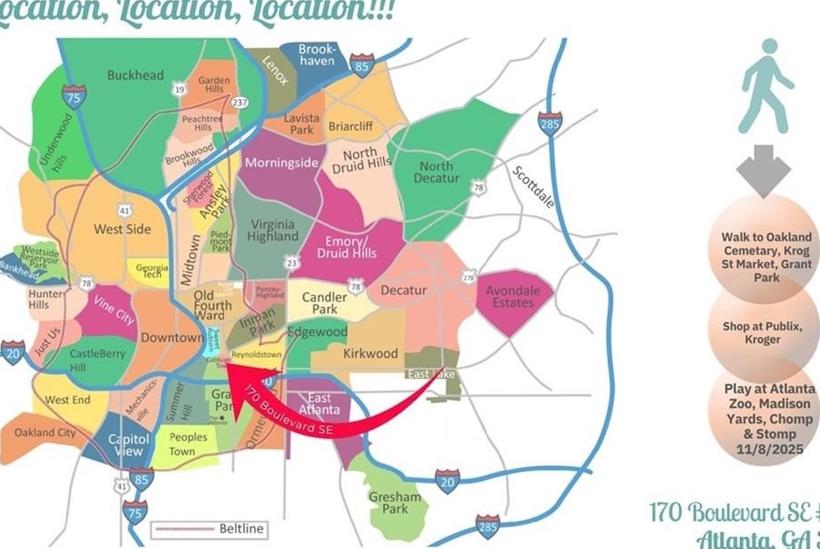 Step outside and you’re in the thick of Atlanta’s most storied and electric neighborhoods, Cabbagetown, Reynoldstown, Grant Park, Inman Park and Ormewood Park. Wander through Oakland Cemetery’s gothic beauty—concerts, festivals, and legends beneath your feet. Hit the BeltLine for a morning run or an impromptu art walk. Grab brunch in Grant Park, sip something strong at Madison Yards, or lose track of time at Krog Street Market. This is where Atlanta breathes.