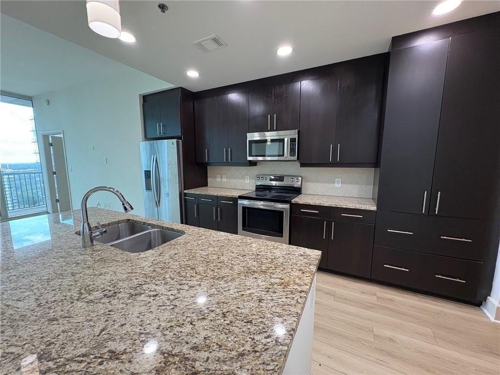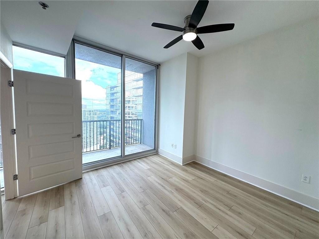 Highly Coveted 2 Bedroom 2 Bath with a DEN ! in the Luxury Residences of 1010 Midtown. Enjoy breathtaking Midtown and Downtown Views from this High Floor having Floor-to-Ceiling Windows throughout and one of the Largest Balconies in the Building. The Generous Entryway is great for Art Work and leads to the Open Concept Floor Plan. Chef’s Kitchen with Stainless Steel Appliances, Granite Counter Tops and large Center Island, all open to the Living Area. Den is located off of the Kitchen which can also be used as a Private Dining Area, Home Office or Third Bedroom! Split Bedroom Plan. The Primary Suite offers a Large Walk-in Closet and spa-inspired Bathroom with Double Vanities, Separate Shower, and Soaking Tub. The Secondary Bedroom is as Spacious as the Primary Suite, the Bathroom Boasts a Double Vanities and a Walk in Shower. New Hardwood Flooring throughout and Freshly Painted. 2 Garage Parking Spaces. Resort Style Amenities include 24 Hour Concierge, Beautiful south-facing Pool, Fitness Center, Club Room with a Catering Kitchen and Billiards, and a Gated Secure Parking Garage. Walk to Piedmont Park, Colony Square, The High Museum and Lots of Shops and Restaurants!