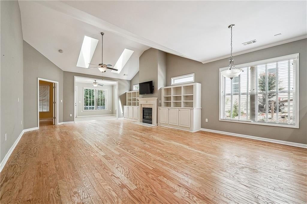 Welcome to The Springs at Sterling on the Lake! This stunning home features a spacious master on the main, updated master suite, and beautiful new hardwood floors. A versatile guest suite or flex room awaits upstairs. Enjoy low-maintenance lawn care and easy access to fantastic amenities including tennis, pickleball, gym, and vibrant social groups—cards, book clubs, and more. With no age restrictions, this community offers a perfect blend of comfort, convenience, and connection. SOTL offers 8 tennis courts, 6 pickleball court, 4 pools, numerous pocket parks, playgrounds and miles of walking trails around the lakes, through natural areas and to a beautiful waterfall. Less than 10 minutes to shopping/ groceries and restaurants. Ideal South Hall location!!