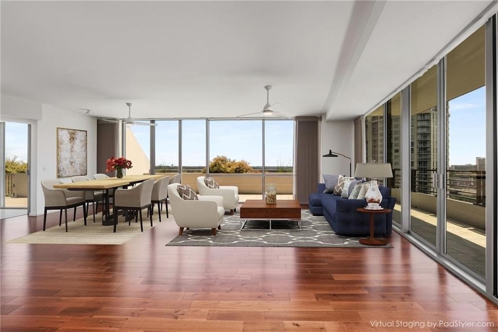 Sweeping Views, Unrivaled Luxury - Welcome to Penthouse 2201 at Park Regency Perched high above the city with panoramic vistas stretching east, north, and west, Unit 2201 is a rare gem-one of only a select few in Park Regency boasting extended balconies and truly breathtaking views. This one-of-a-kind penthouse offers an extraordinary blend of elegance, comfort, and sophistication. Step through the front door and be immediately captivated by a dramatic wall of windows that flood the home with natural light and frame the skyline like a work of art. The beautifully updated kitchen is a chef's dream, complete with premium appliances, a wine bar with built-in fridge, and seamless flow into the expansive great room-perfect for entertaining. The generous balcony space serves as an extension of your living area, ideal for al fresco dining or simply soaking in the views. The oversized guest suite features a luxurious ensuite bath, a spacious walk-in closet, and direct access to one of the balconies. On the opposite wing, the gracious primary suite offers a serene retreat, complemented by a large laundry room and a third bedroom-currently configured as a well-appointed home office with custom built-ins and abundant storage. Every room in this home enjoys access to the wraparound balconies, creating a seamless indoor-outdoor lifestyle. Park Regency presents an incomparable opportunity to enjoy the ultimate in Buckhead living enhanced by attentive services, gracious amenities and security features including a grand lobby with welcoming Lobby Ambassadors, valet parking, attentive staff including engineering, housekeeping, maintenance and management, electronically monitored access controls manned 24/7/365, gated entrance and grounds and gated secured parking garage, event room with full catering kitchen available for homeowner use, resort style pool and hot tub, fitness center with steam and sauna, rooftop terrace, climate controlled wine cellar where each homeowner has an assigned bin, 2 guest suites available for owners to rent for their guests, convenient pet walk, emergency call systems in every home, and assigned storage with every home. The ultimate in Lock and Leave!