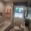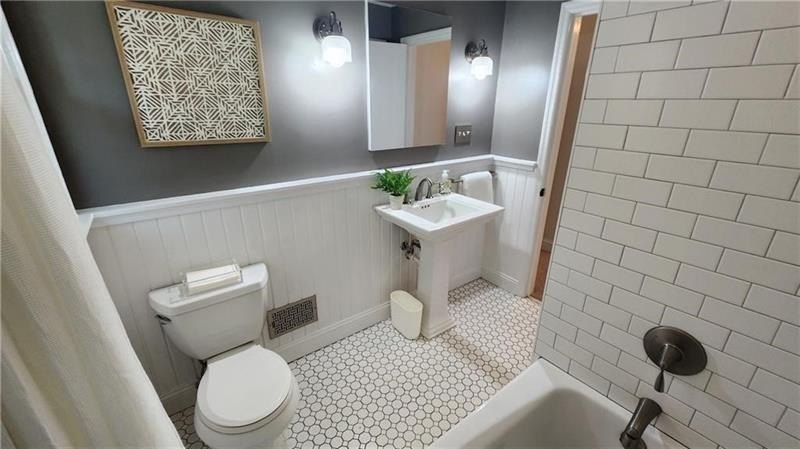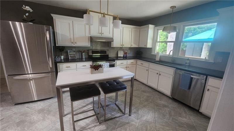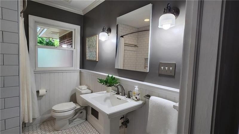 The heart of this home is undoubtedly the upgraded kitchen. Outfitted with steel appliances, a marble countertop, and wooden cabinets, it's an inspiration for both casual meals and gourmet feasts. A modern vanity and bathtub grace the updated bathroom, rounding out the interior comforts.