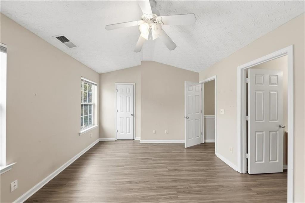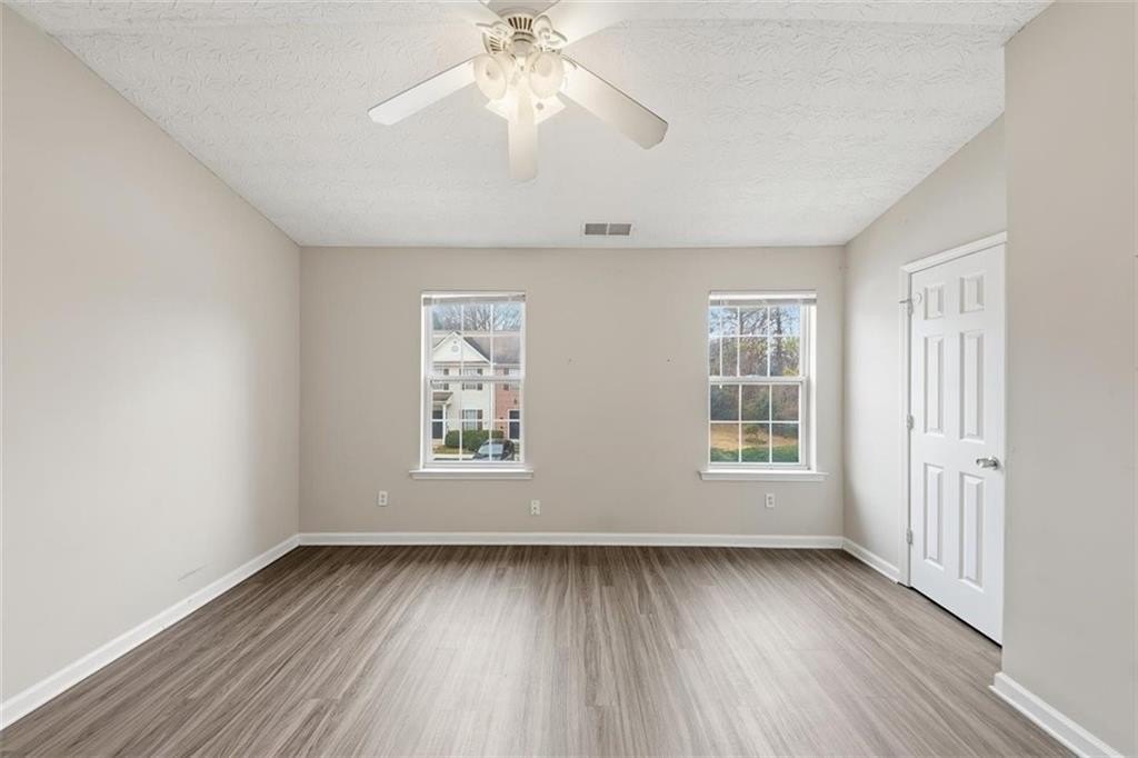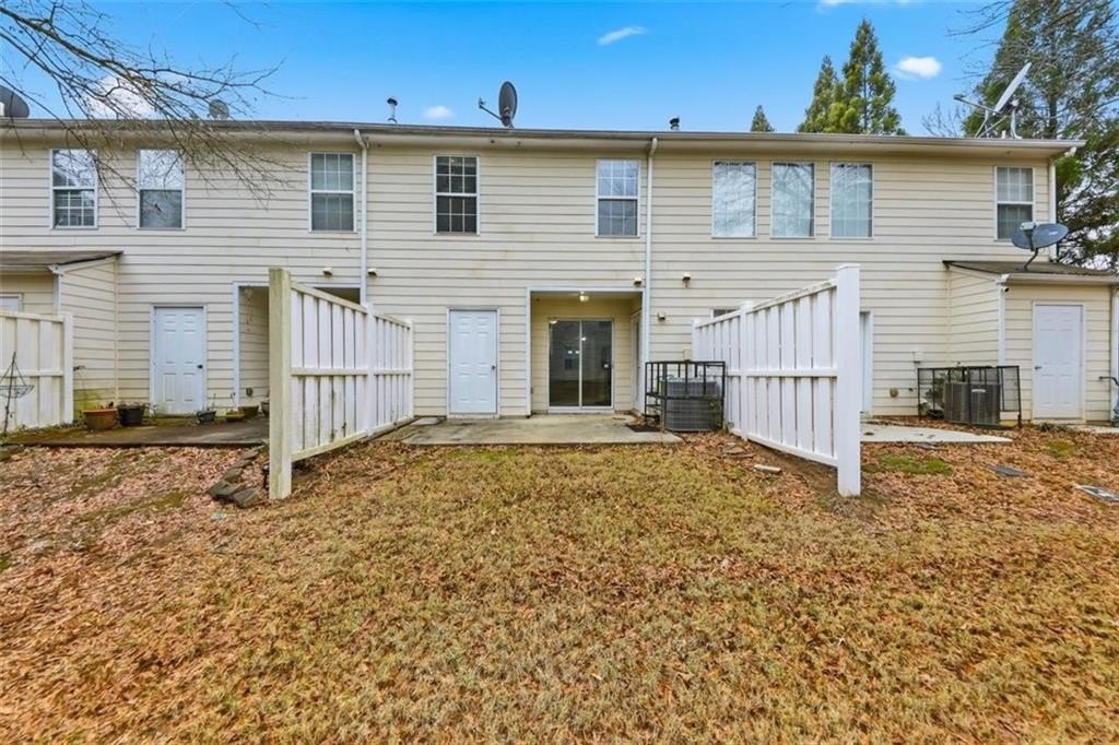 Well-maintained 2-bedroom, 2.5-bath townhome featuring double primary suites and vaulted ceilings. The open main level offers a spacious living area with a cozy fireplace, updated lighting, and durable flooring throughout. The kitchen provides ample cabinet space and flows easily into the living area-ideal for everyday living or entertaining. Both upstairs bedrooms feature private en-suite baths for added comfort and privacy. Enjoy outdoor living with a private concrete patio and additional exterior storage room. Peace of mind comes with newer HVAC systems and low-maintenance living, as the HOA covers grounds maintenance, exterior structure, sewer, termite, trash, and water. Conveniently located near I-285, shopping, dining, and the airport.