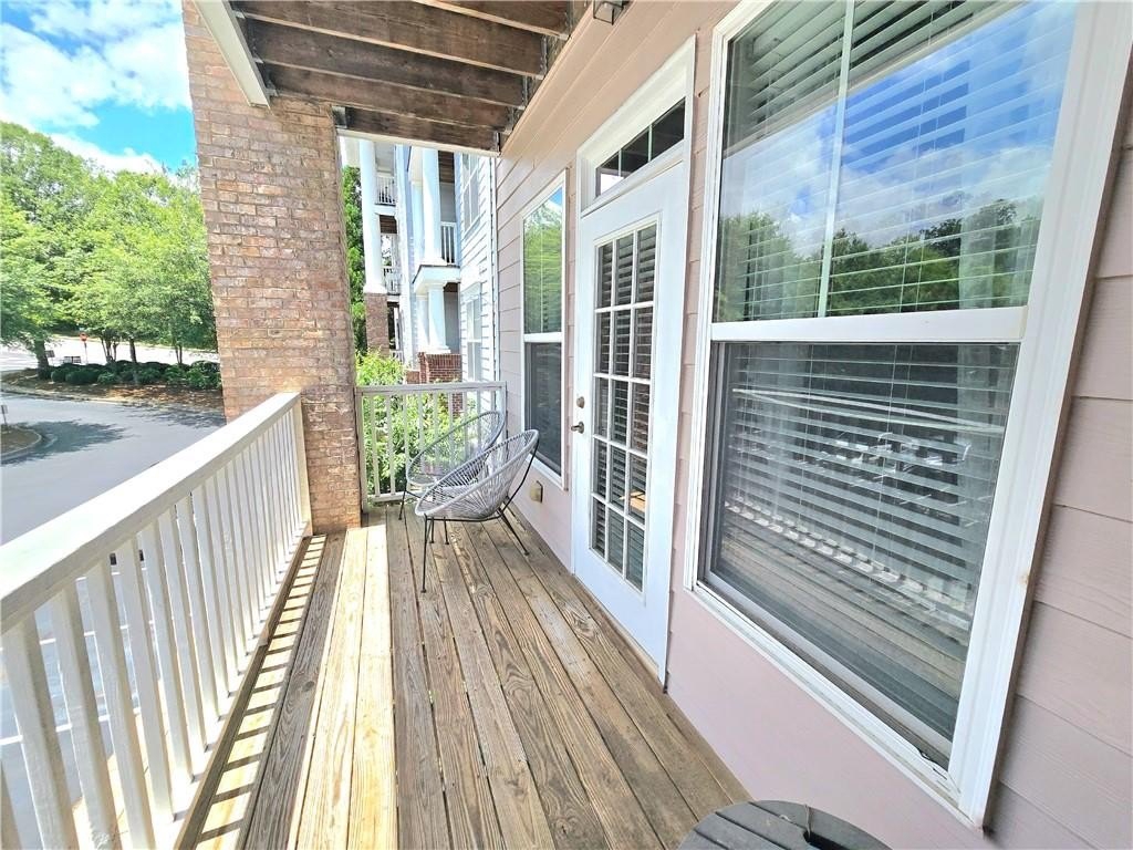 Prime Location! Beautiful 2BR/2BA Condo on the Second Floor Near Downtown Alpharetta & Avalon This stunning condo offers the perfect blend of convenience and comfort. The kitchen is a bright, modern space with abundant cabinetry, It's open to the dining and living areas, perfect for entertaining or casual family living. Throughout the condo, you'll find gorgeous luxury vinyl plank flooring, complemented by ceramic tile in the bathrooms. The spacious family room opens onto a balcony with a serene view, offering a peaceful retreat. Bedrooms are spacious each featuring large walk-in closet with abundance of natural lighting. Additional features include secure building access with an elevator, an assigned resident parking spot, and plenty of guest parking. The beautifully maintained community also boasts professional landscaping, a pool, and gazebo. The building's roof was replaced within the last 5 years, ensuring peace of mind for years to come. Located just minutes from downtown Alpharetta, Avalon, and Northpoint Parkway Shopping & Restaurants. Enjoy walking distance to the Ameris Bank Amphitheater, Fetch Dog Park, local parks Alpharetta Greenway, and easy access to the AlphaLoop. Plus, you're just moments away from GA 400 for quick commuting. This condo offers unbeatable value, ideally situated for both relaxation and convenience to Alpharetta's most desirable areas, this move-in-ready condo is the perfect place to call home or great turn-key investment. Don't miss out on this incredible opportunity!
