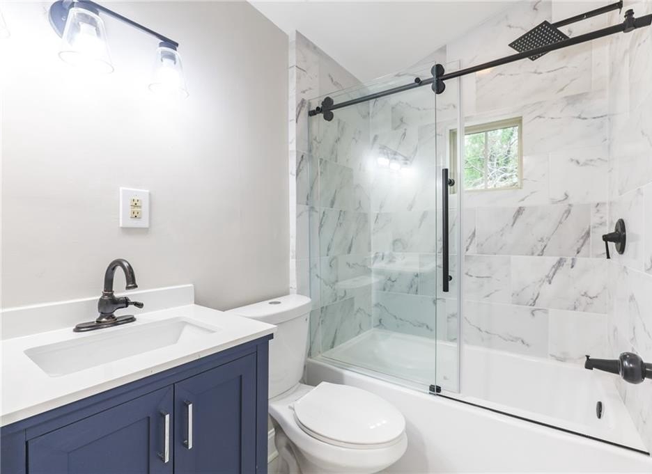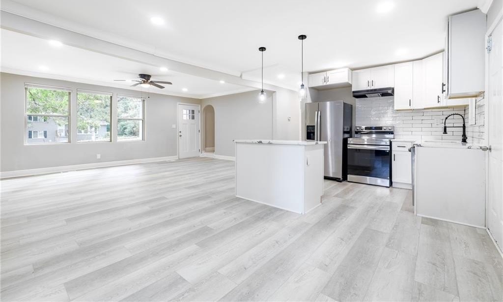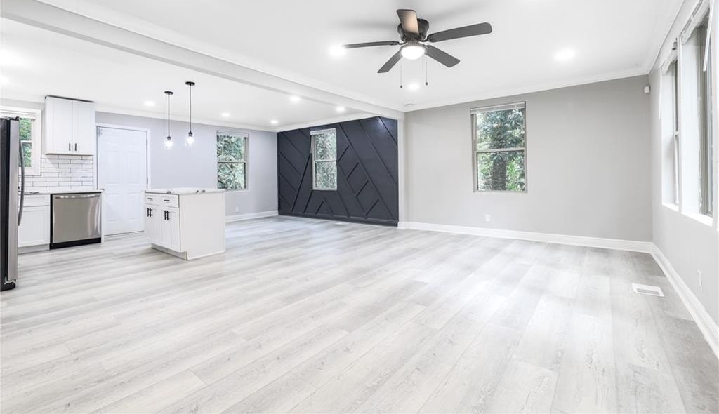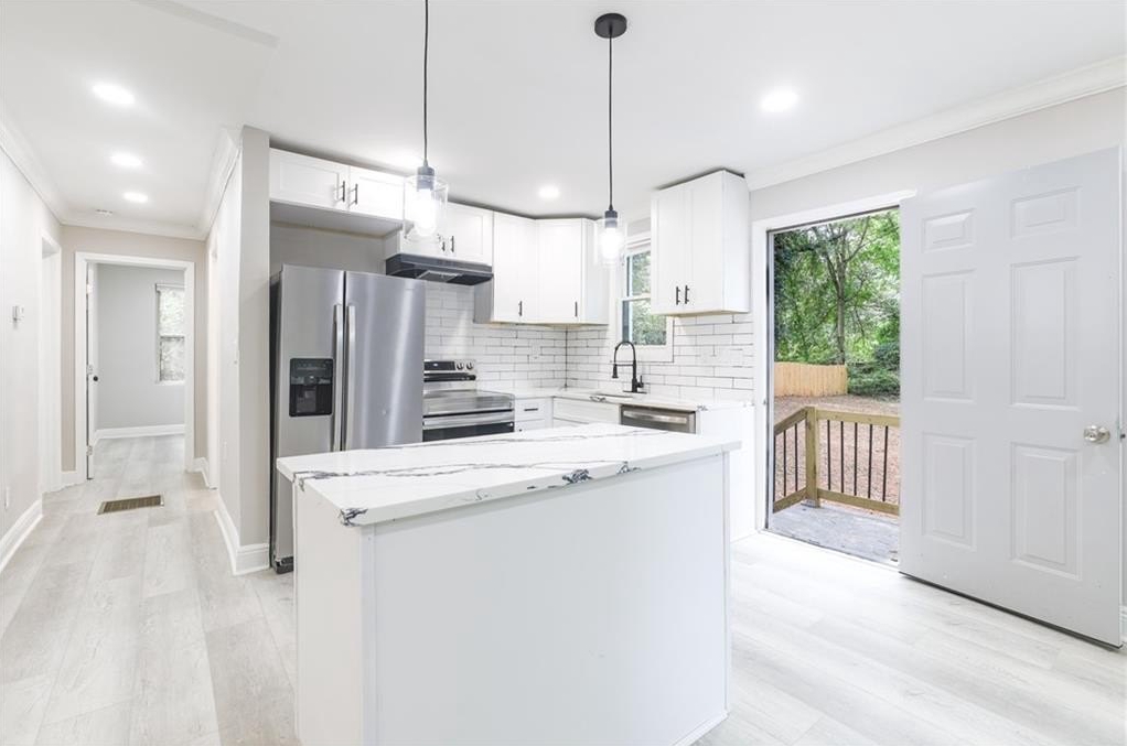This renovated two-story Decatur home is much larger than it looks from the street and has one of the largest back yards in the neighborhood. Designed with modern style in mind, you are welcomed into the home's open concept main living areas with accent wall opposite a stainless kitchen with island and tile backsplash. There are two bedrooms on the main level that share a hall bath with tile shower. Upstairs, find even more space with two additional bedrooms, another bathroom and laundry. This driveway can easily fit six vehicles. Located close to some of the area's most beloved places such as Downtown Decatur, Avondale Estates, East Atlanta Village and more! You'll love this one.