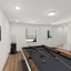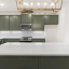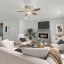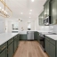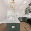 The chef’s kitchen is a showstopper—highlighted by quartz countertops, a farmhouse sink, custom cabinetry, a stylish backsplash, stainless steel appliances, a generous walk-in pantry, and an oversized island with breakfast bar—ideal for entertaining or casual dining.