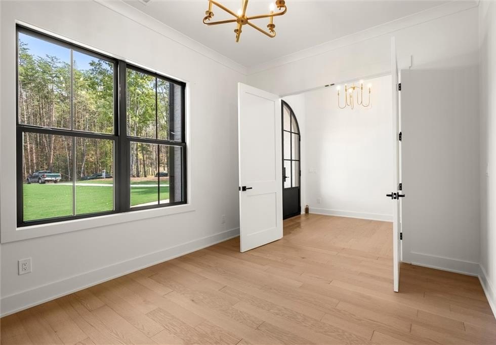Your Dream "Luxury Ranch Retreat" Awaits- MOVE IN READY...construction is complete! Discover the warmth and charm of this modern ranch, perfectly situated on 5 serene acres within a beautiful gated community-just a short stroll from the quaint streets of Downtown Ball Ground. This thoughtfully curated home offers over 7,000 sq ft under roof and main-level living at it's finest...a seamless combination of timeless style, elegance and comfort. Fall in love at first sight with it's stunning exterior...batten board siding, elegant brick accents, gas lanterns, and a three-car garage with carriage-style doors. Step inside through the inviting covered entry to a light-filled, open-concept living space where smart design meets seamless functionality. The impressive two-story foyer, wide plank hardwood floors, and gracious study welcome you home. The expansive fireside family room flows effortlessly into the gourmet kitchen-an ideal space to unwind, create, and entertain. Bringing the outdoors in, the vaulted back porch is truly a highlight, offering a seamless extension of the home's main living areas. Top of the line Wolf and Sub Zero appliance package, custom cabinetry + a gorgeous, thoughtfully designed island flanked by quartz countertops create a stunning and functional kitchen space. The scullery style pantry features a convenient pass through "Costco" door for easy unloading of groceries and goods direct from garage. Relax and retreat to the Elegant Primary Suite with hardwood floors + spa-like bath- soaking tub, double shower + custom walk in closet. The large laundry room with mud sink and custom cabinetry is conveniently located just outside the Primary Suite. Rounding out this main level living beauty... three secondary bedroom ensuites with hardwood floors and walk-in closets. Upstairs, a spacious flex room- perfect, private 5th bedroom space for guests, a bonus|rec room, or a teen suite with full bath. Over 3,400 square feet of unfinished terrace level space just waiting for your creativity- room to expand or storage! The potential to craft your dream outdoor oasis is yours. Position it right here for the ultimate 5 acre experience. The Highlands at Sharp Mountain is gated enclave of 21 estate sized lots....just minutes from Downtown Ball Ground, top rated schools, I-575, Canton Marketplace, Northside Cherokee Hospital, and a short road trip to the North Ga Mountains!