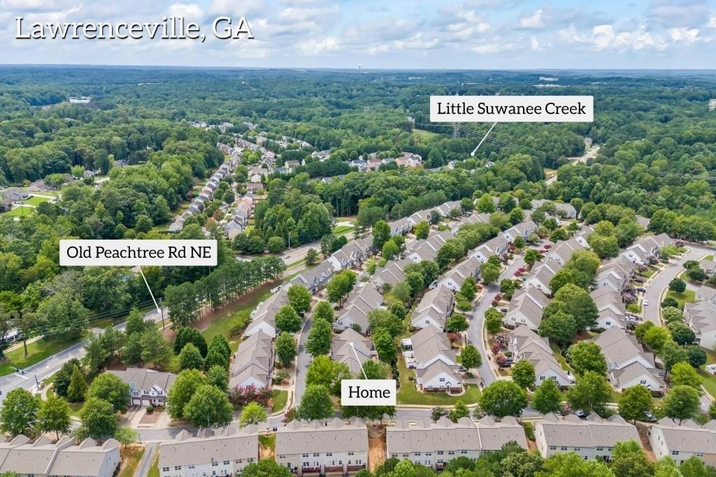 Charming 2-story townhome located in Little Suwanee Pointe Subdivision, featuring a pool and clubhouse. The inviting front porch is perfect for greeting guests. Inside, you'll find 3 spacious bedrooms and 2.5 baths. The great room boasts cathedral ceilings and an open-concept living and dining area. The well-sized master bedroom offers a walk-in closet, double vanity, and tub/shower combo. Enjoy the private, fenced patio, perfect for cookouts and family gatherings. This home is situated in an excellent school district and is just minutes from the Mall of Georgia, downtown Lawrenceville, and downtown Suwanee. Experience the best of nearby amenities, including Top Golf, shopping, dining, the Gwinnett Braves Stadium, and the new features at The Exchange. GGC college, Gwinnett parks, dog parks, soccer fields, and a skate park are all just 5 minutes away. Convenient access to major highways like I-85, I-985, Hwy 20, Satellite Blvd, and Peachtree Industrial Blvd makes commuting easy. The HOA covers exterior maintenance, termite treatment, and lawn care. This neighborhood is also investor-friendly with no rental restrictions.