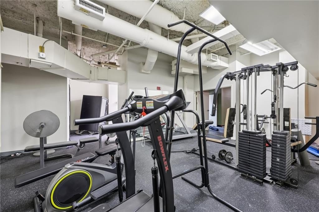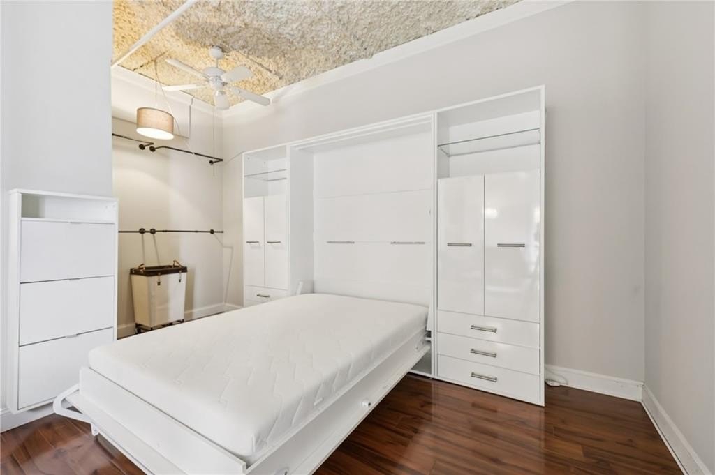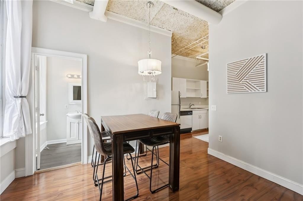 Penthouse-level condo in the iconic Metropolitan, Atlanta's first true skyscraper, rich with historic character and timeless appeal. Located in the vibrant heart of Downtown Atlanta, this residence seamlessly blends classic architecture with modern urban living. Step inside to soaring 10-foot ceilings, exposed ductwork, and hardwood floors that create an authentic loft-style ambiance. Oversized rotating windows flood the space with natural light while showcasing sweeping city views. The efficient, thoughtfully designed layout maximizes both comfort and functionality, making this home ideal for city living or a savvy investment. The Metropolitan offers exceptional amenities, with HOA dues covering concierge service, a well-equipped fitness center, and ground maintenance. Additional features include a secured-access lobby, on-site laundry, and a pet-friendly environment for added convenience and peace of mind. Enjoy an unbeatable location just minutes from Mercedes-Benz Stadium, State Farm Arena, Centennial Olympic Park, the Georgia Aquarium, Georgia State University, Georgia Tech, and the Five Points MARTA station. Whether you're seeking a dynamic lifestyle or a low-maintenance urban retreat, this penthouse condo delivers historic charm, modern convenience, and unmatched access to Atlanta's best attractions.