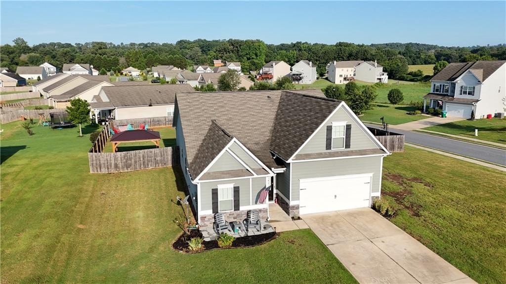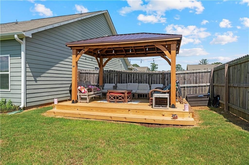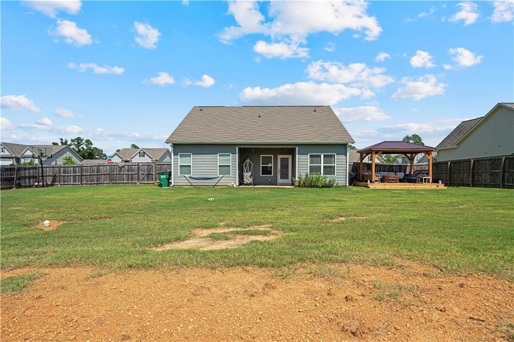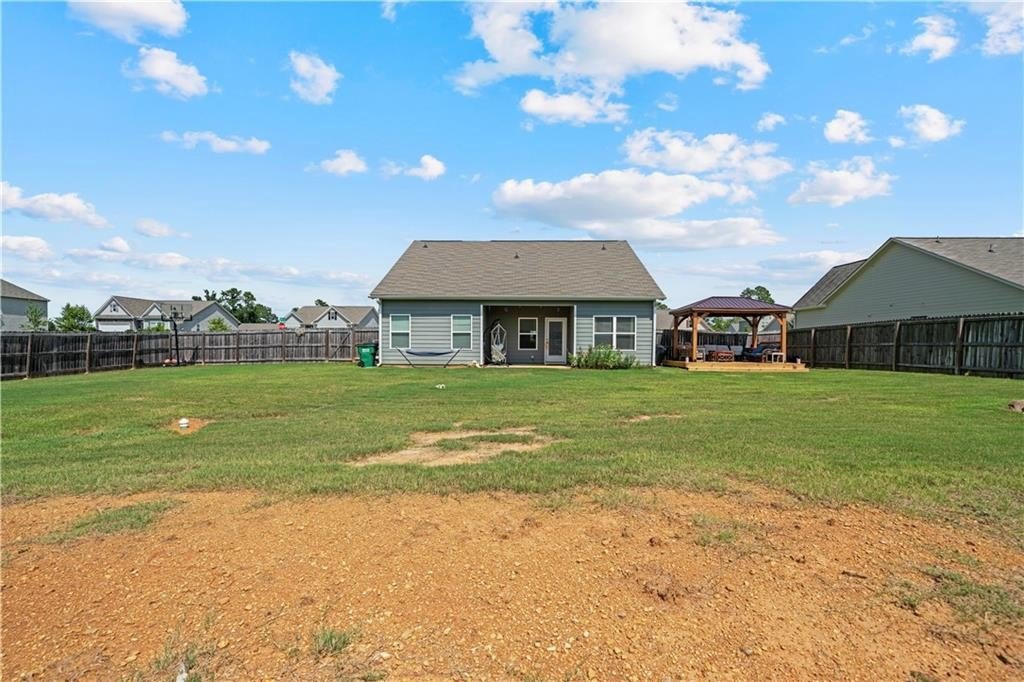 The outdoor living space is a true highlight of this property. The backyard is a haven for summer activities, featuring a gazebo, providing a shaded retreat for outdoor dining or lounging. A stone fire pit area with seating is the perfect spot for evening gatherings and making memories under the stars. The fully fenced yard ensures privacy and a secure environment for outdoor play. This home offers a balance of comfort, style, and functional spaces, both inside and out. It is a place where you can truly settle in and enjoy the quiet life that Adairsville has to offer. Schedule your private tour today.