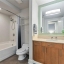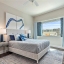 The luxurious primary suite is a serene retreat with a spa-inspired bath featuring dual vanities, a frameless glass shower, and a walk-in closet with ample shelving. A second ensuite bedroom provides a comfortable guest retreat with its own full bath.