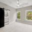 Upstairs, the primary suite boasts natural light, a trey ceiling, barn doors, plush carpeting, and a spa-like bath with designer finishes. The secondary bedroom offers an ensuite bath and ample light. The lower levels feature a loft-like flex room and a third bedroom with a private patio, perfect for a home office, media room, or guest space.