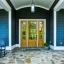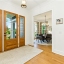 Step inside through the beautifully stained wooden front door, framed by a covered, flagstone patio and discover a grand foyer with a formal dining room to your left and a private office to your right- both dining area and office feature French doors leading to the covered, front patio.