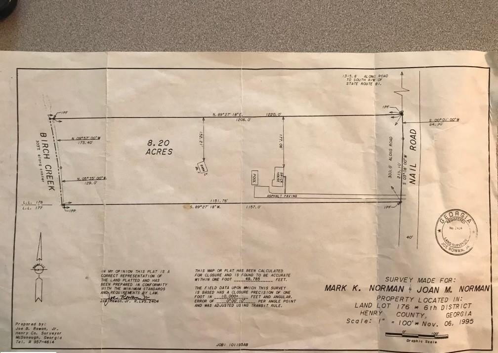 Property is located 1.5 miles from I-75 at exit 218. Perfect opportunity for residential development, this land is situated on 8.2 mostly flat acres with 300 ft. of road frontage just outside the city limits of quickly growing McDonough, GA. Possibility of up to 48 units with comps in the high 300s - low 400s. Henry County Future Land Use Map designates this property for "high-density suburban" development at up to 8 units per acre. Per Henry County 2023 approved Future Land Use Map, this property may be zoned for potential: R4: detached single-family residential dwellings that are either site-built or industrialized on lots. R5: Detached single-family residential dwellings that are either site-built or industrialized on lots, and/or horizontal multifamily and townhome developments, where appropriate. RD: Residential duplex district. RS: combination of two (2) of the following: single-family, duplex, or multifamily developments. County sewer accessible and on property completed in 2024. Nail Dr. roadway widened and repaved in May 2025. County Water, Cable, Electricity, Natural Gas, Phone, Sewer, Internet Fiber all available. Conveniently located 1/4 mile to South Pointe Mall shops, restaurants, and easy access to Hwy 20 / I-75. Bring your builders and developers and don't miss the opportunity on a prime residential development in this growing area!